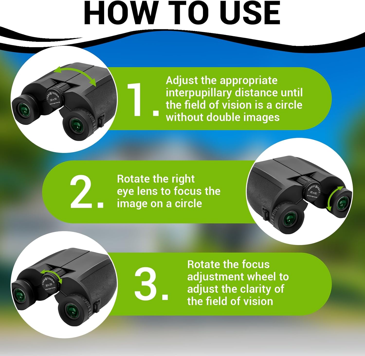 20x25 Binoculars for Adults & Kids, High Power Easy Focus,Waterproof Compact Binoculars with Low Light Vision for Bird Watching,Travel,Concert,Hiking(Black)
