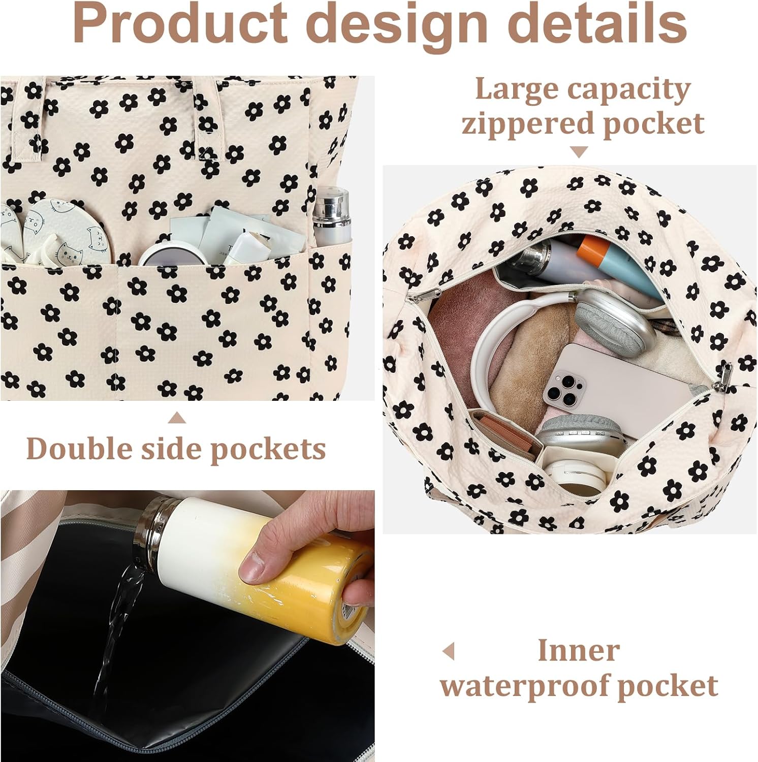 • Wet Pocket: Unlike other beach tote bag, this one is up-graded with separate waterproof wet compartment which you can put into some wet stuff Toiletries, wet swimsuit and towels, keep other items dry all the day.
