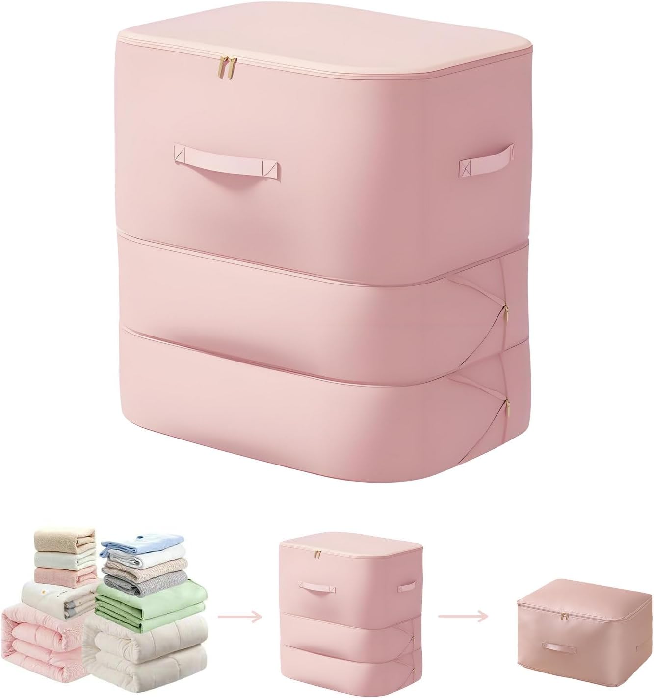 Ultra Space Saving Self Compression Organizer, 2025 New 3-Layer Zipper Large Capacity Storage Bag, Thick Satin Fabric Heavy Duty Bags for Comforters Blankets Bedding Duvet (Pink, X-Large, 21x17x24in)