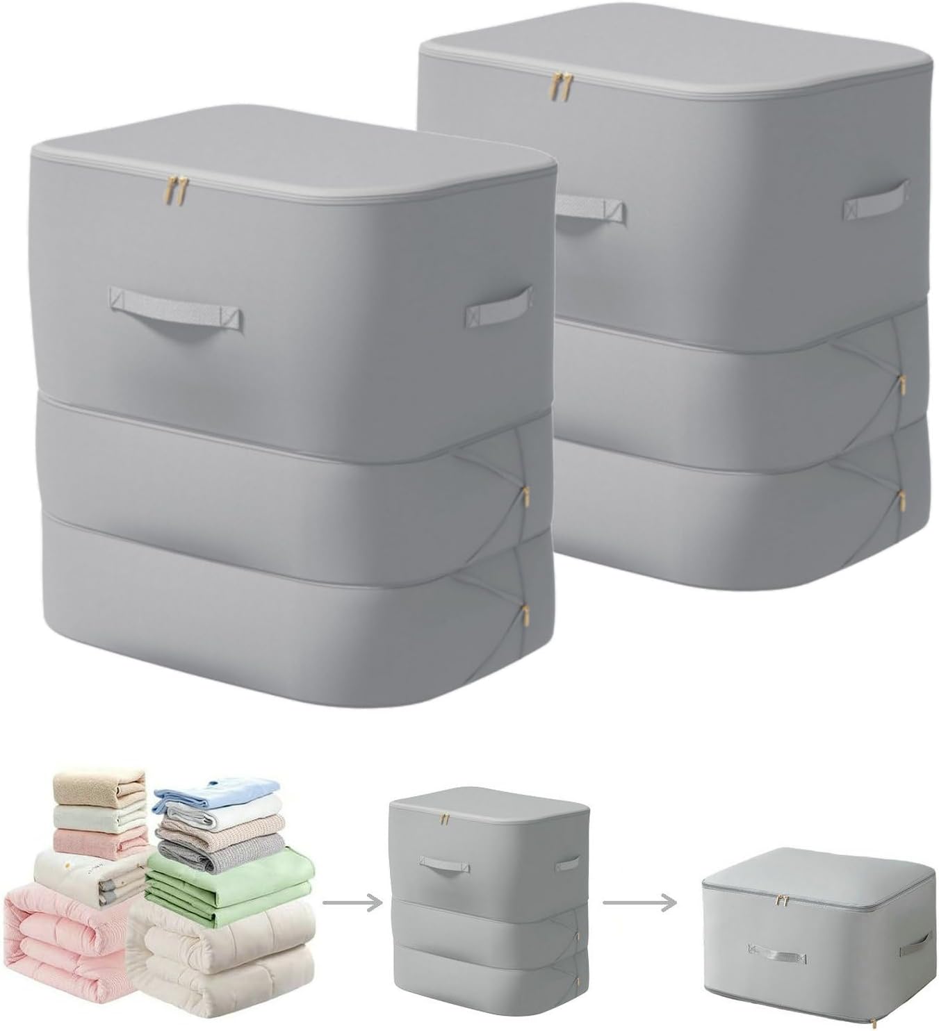 Ultra Space Saving Self Compression Organizer, 2025 New 3-Layer Zipper Large Capacity Storage Bag, Thick Satin Fabric Heavy Duty Bags for Comforters Blankets Bedding Duvet (Gray, X-Large, 2PC)