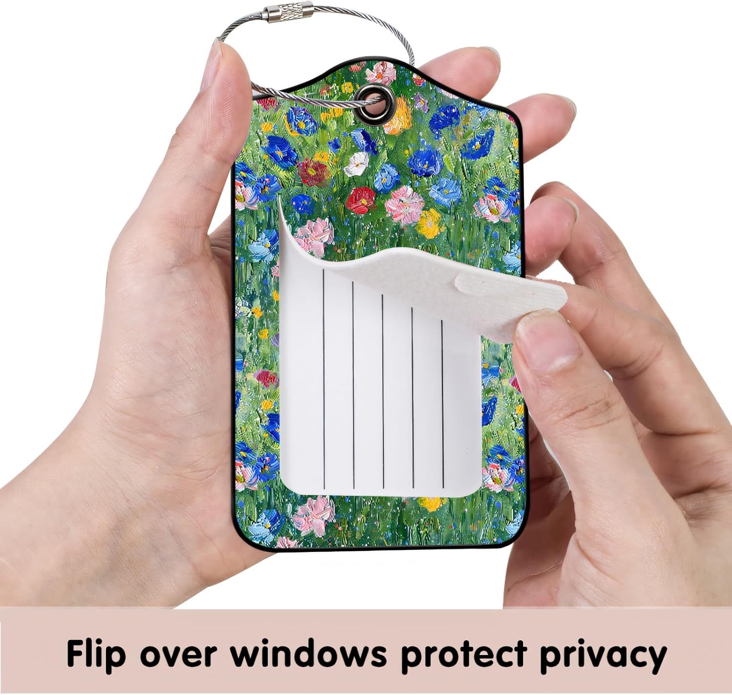 Luggage Tags for Suitcases, 2-Pack PU Leather for Cruise & Travel, Baggage ID Tags with Privacy Cover & Address Card, Durable Metal Ring, Kids Adults Travel Accessories, Impressionist Meadow