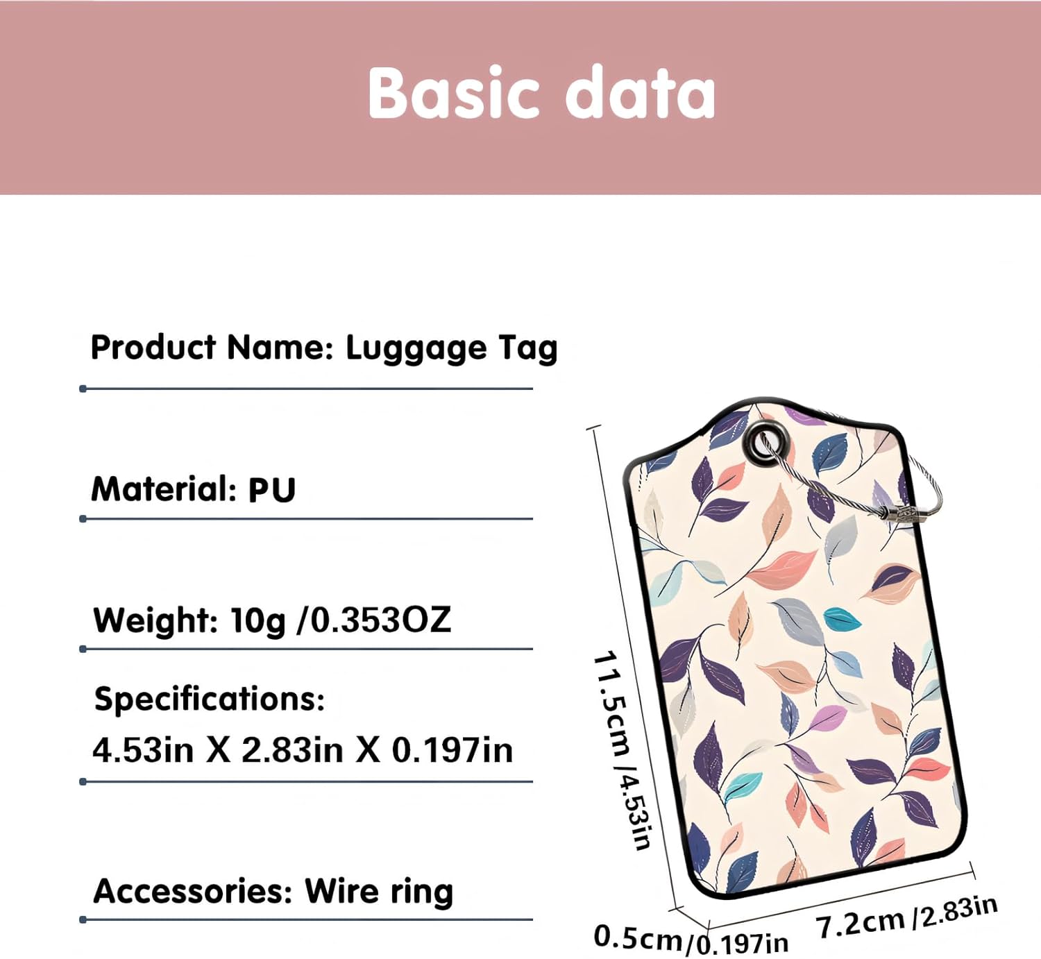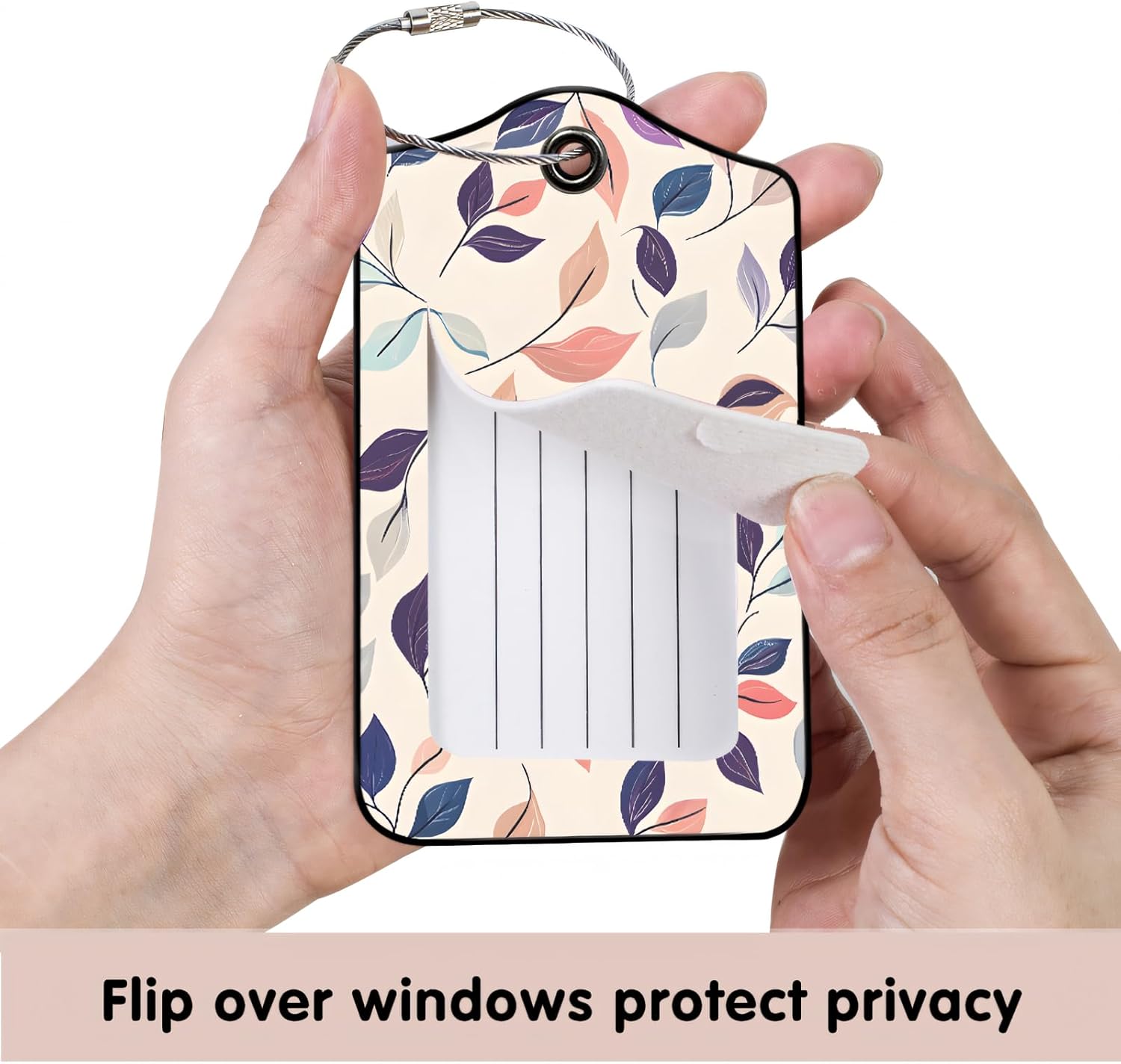 Luggage Tags for Suitcases, 2-Pack PU Leather for Cruise & Travel, Baggage ID Tags with Privacy Cover & Address Card, Durable Metal Ring, Kids Adults Travel Accessories, Pastel Foliage