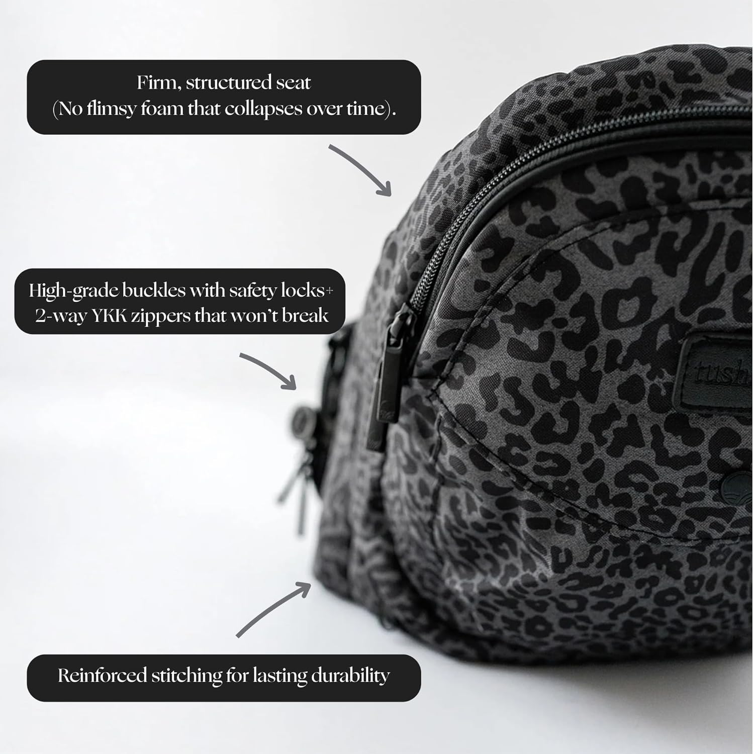 Tushbaby Ergonomic Hip Seat Carrier- for Babies and Toddlers 0-3yrs, Safety Approved, Structured Support, Convenient Pockets, Feeding Aid, Durable YKK Zippers, Foam-Free Build, (Jaguar)