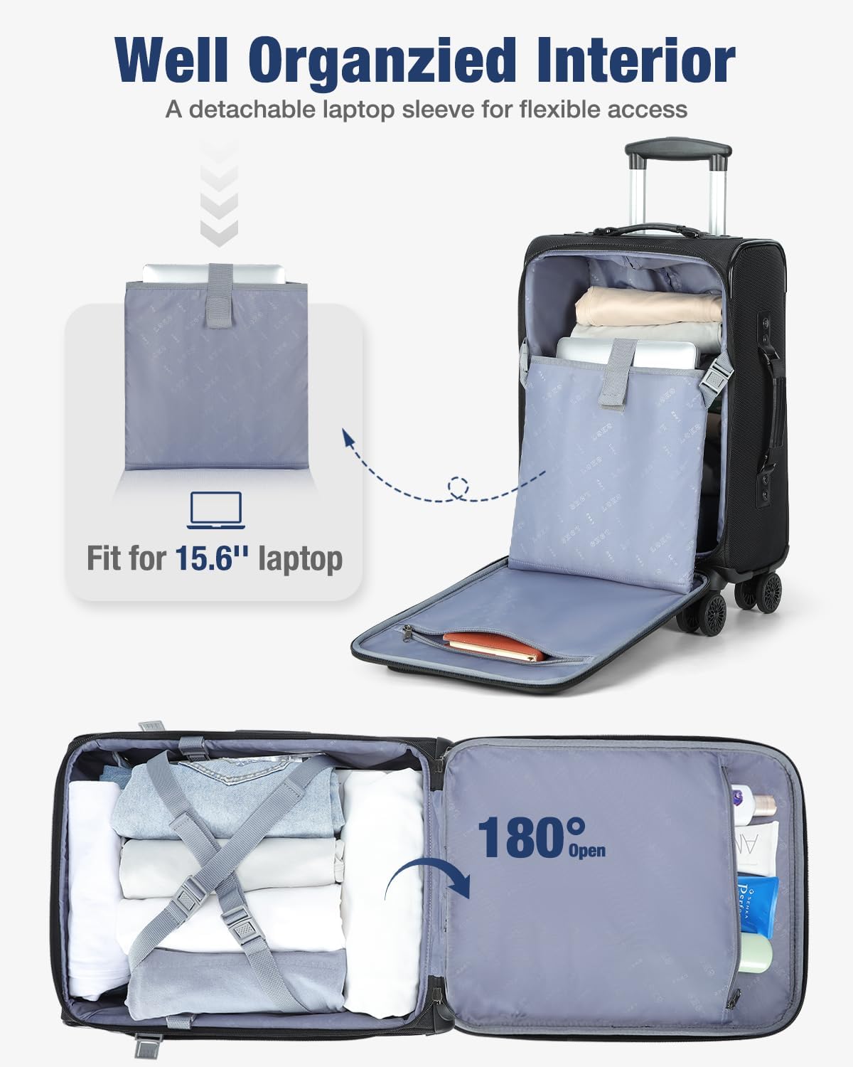 - Ideal for Overnight Trips: This carry-on suitcase has multiple compartments, including a spacious main section, a detachable 15.6-inch laptop sleeve, a front accessory pocket, and a small quick-access pocket. Keeps essentials organized—no more rummaging