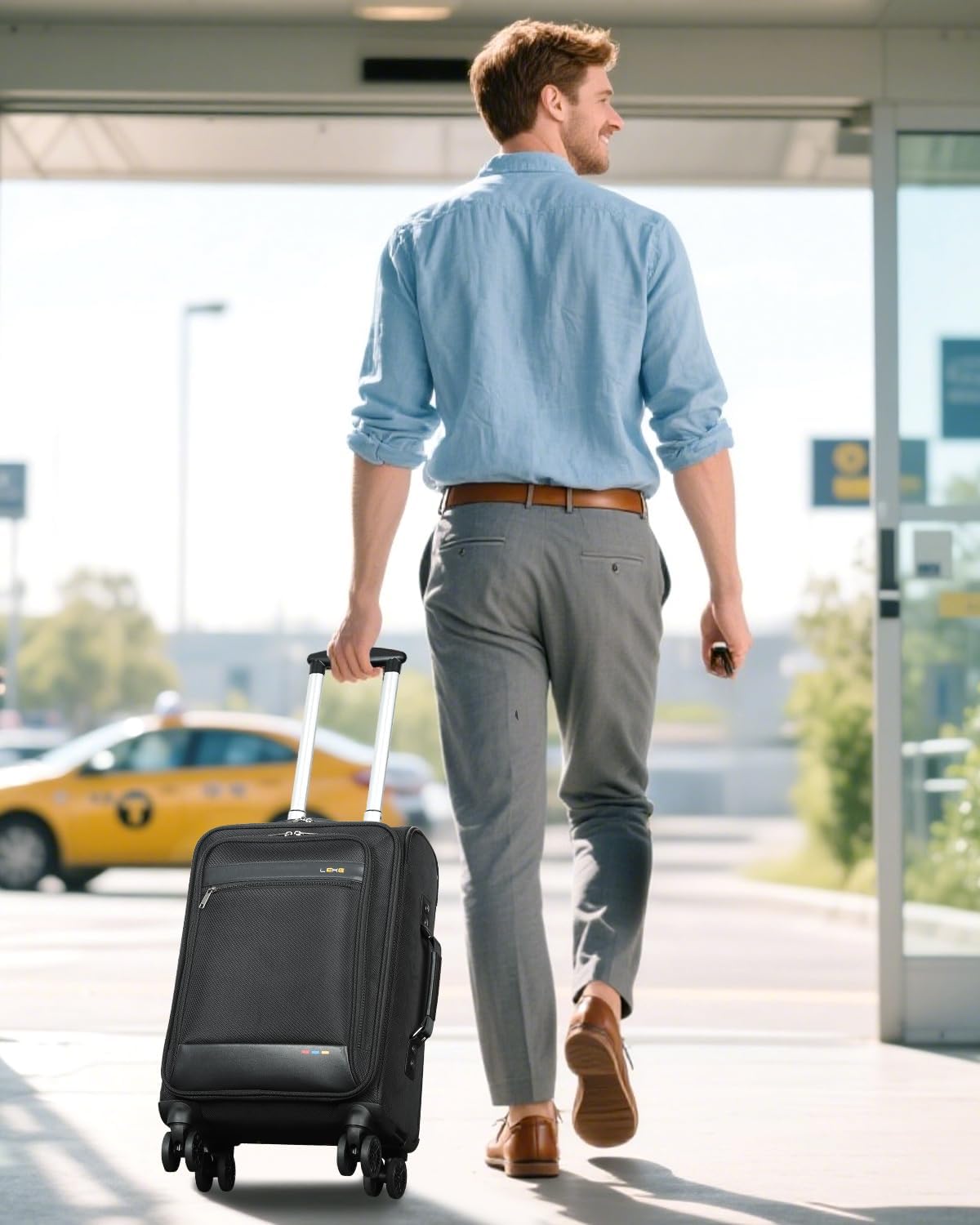 Lekebobor 20 Inch Carry On Luggage with Wheels Airline Approved, Softside Carry-On Suitcase for Women Men Travel Business, Black