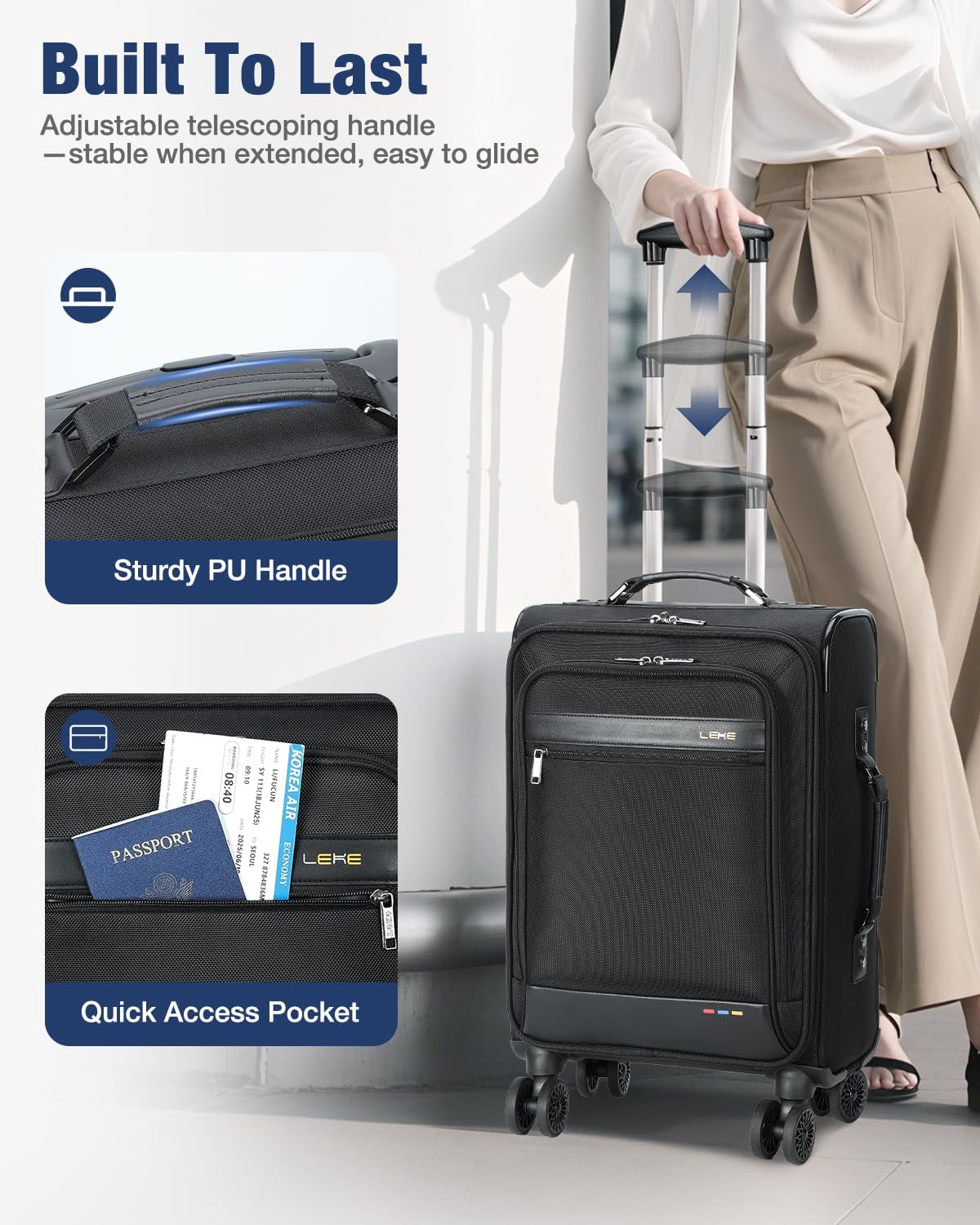 - Smooth-Gliding Wheels: Equipped with four 360° spinner wheels, the Lekebobor airline approved carry on glides smoothly over various surfaces. Whether you are rushing to catch a flight or navigating through narrow spaces, moving this carry-on is effortless
