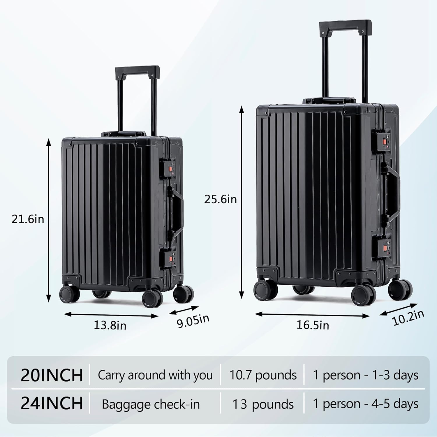 - 【Aerospace-Grade Aluminum Alloy Construction】100% seamless aluminum-magnesium shell delivers military-grade durability while staying 30% lighter than traditional metal luggage – perfect for strict airline weight limits.