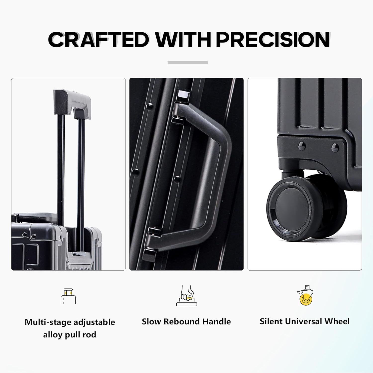 YYW Aluminum Carry-On Luggage Airline Approved Lightweight Suitcase with TSA Lock and Silent Wheels, Hardshell Spinner Business Travel (Black, 24in)