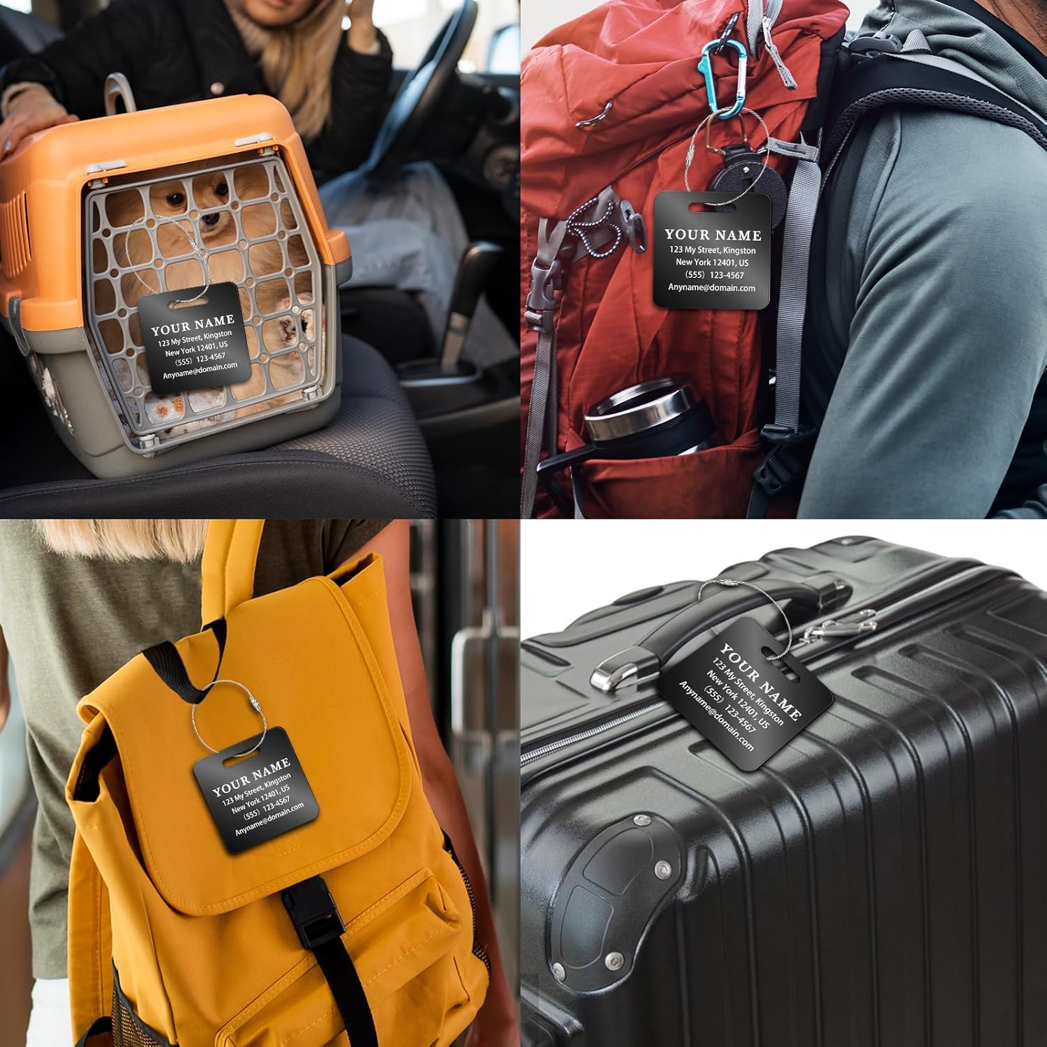 Personalized Luggage Tags for Suitcases (2/4/6/8 Pack) - Custom Engraved Metal Travel Tag, Customizable Pattern/Name/Text for Bags Backpacks Suitcases