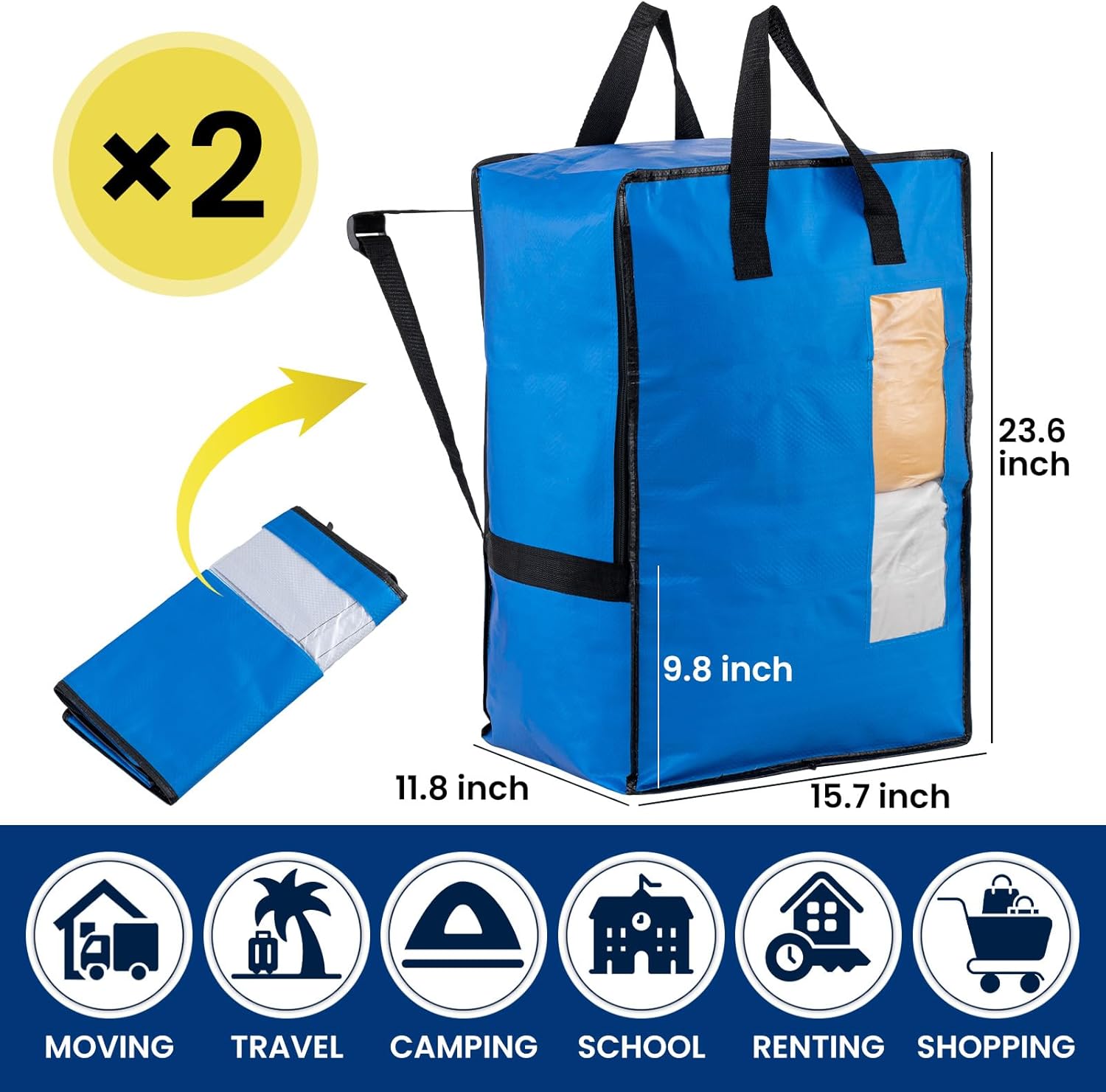 TAILI 2 Pack Blus Moving Bags w/Adjustable Backpack Straps, Moving Supplies, Moving Boxes Alternative, Heavy Duty Storage Totes for College Packing, Camping Backpack for Travel, Dorm, Laundry