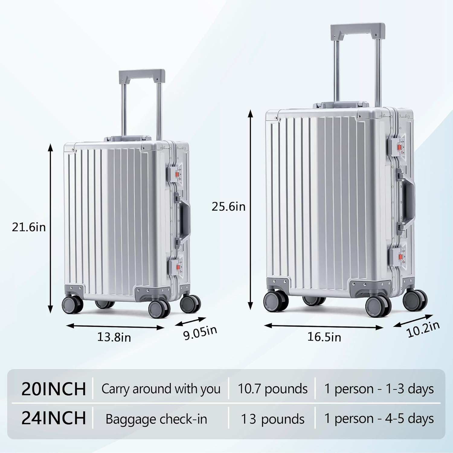- 【Aerospace-Grade Aluminum Alloy Construction】100% seamless aluminum-magnesium shell delivers military-grade durability while staying 30% lighter than traditional metal luggage – perfect for strict airline weight limits.