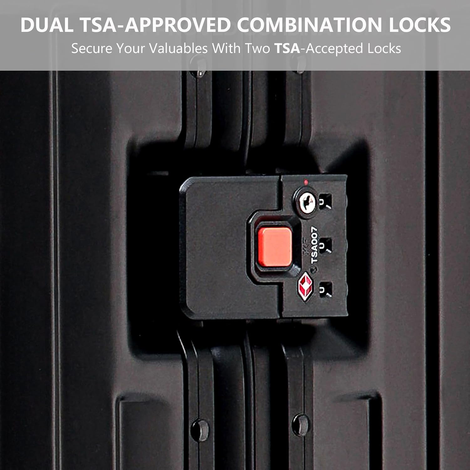 - 【Dual TSA-Approved Combination Locks】Secure your valuables with two TSA-accepted locks – customs officials can inspect without damage using master keys, while you set personalized codes. Zinc alloy lock bodies resist prying and corrosion.