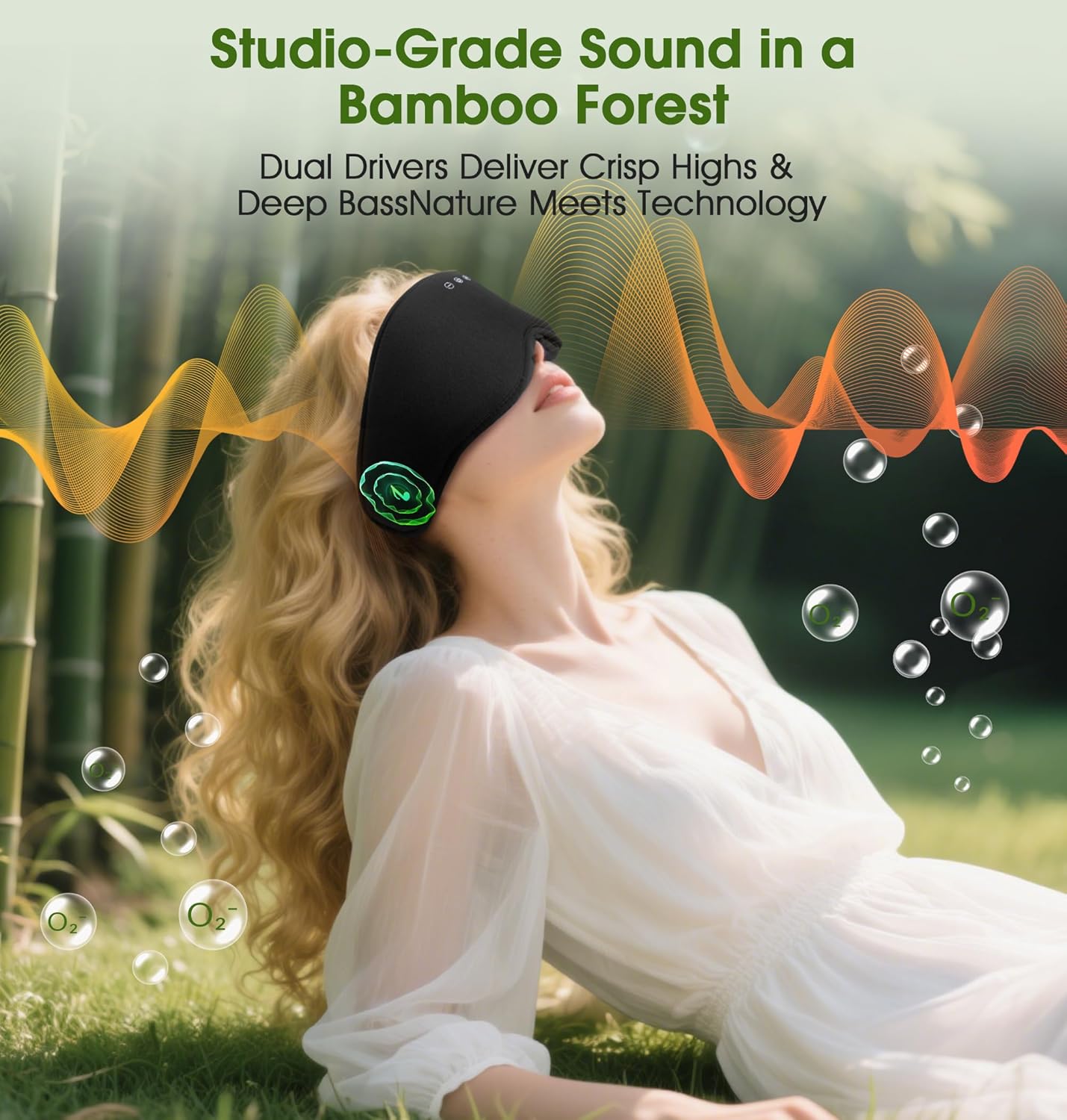 - 5.4 Bluetooth & Premium Audio: More than just a sleep mask, itâs a high-res sound system. With 96kHz audio and ultra-fast 900Kbps transmission, stream music, podcasts, or white noise seamlessly. Built-in microphones allow for crystal-clear calls, while the thin, flexible speakers stay comfortable all night. HIFI stereo sound quality makes you feel like you are in a concert. Relax your mind by enjoying the beautiful sounds of nature in the refreshing bamboo forest with our sleep mask