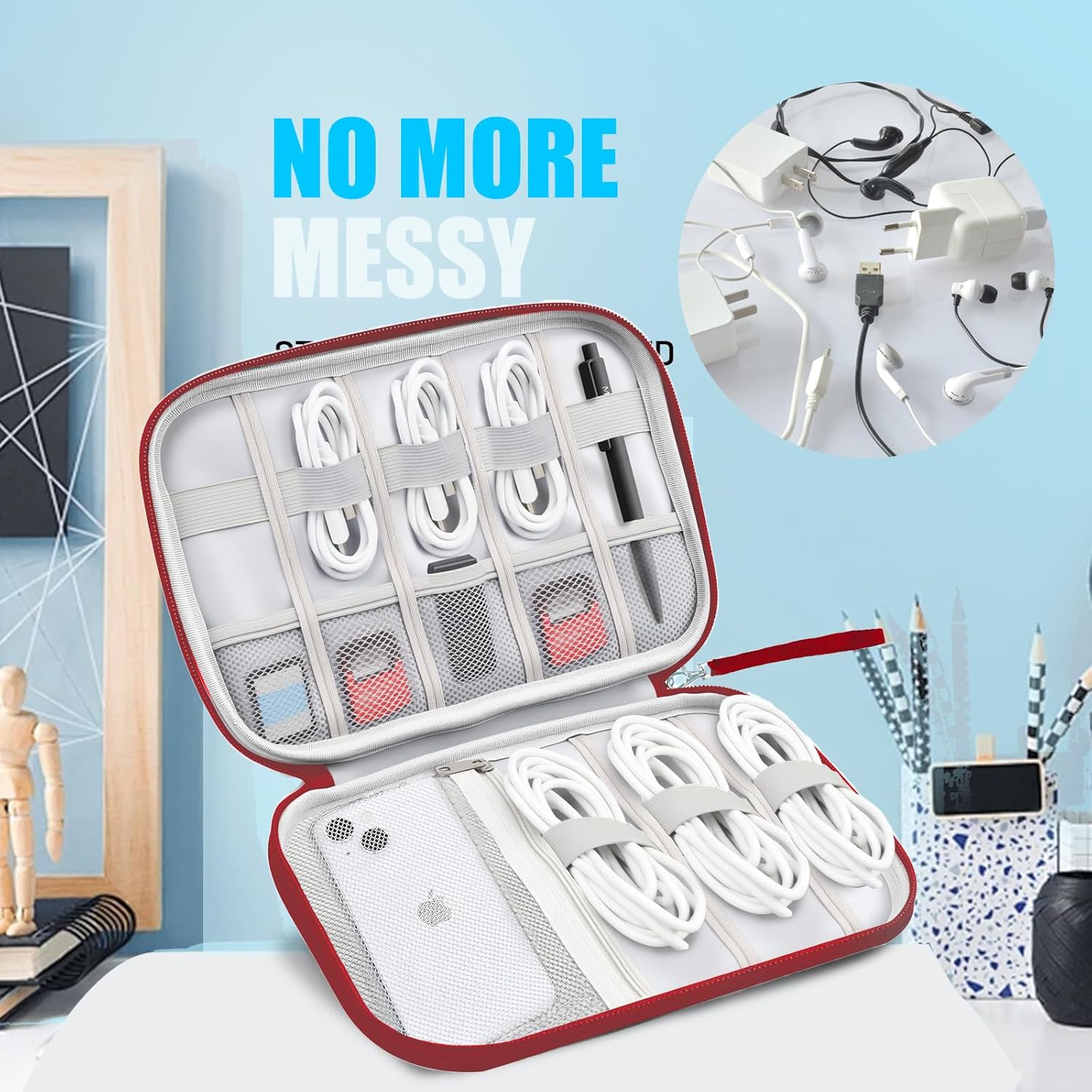 • 🚇Efficient Organization: Featuring a compartment design, our travel charger organizer allows you to efficiently store and access your travel accessories, including cords, chargers, and tech devices. The well-organized layout ensures that your electronics stay neatly arranged and tangle-free, making it easy to grab what you need on the go. It’s a great cable organizer and charger case all in one