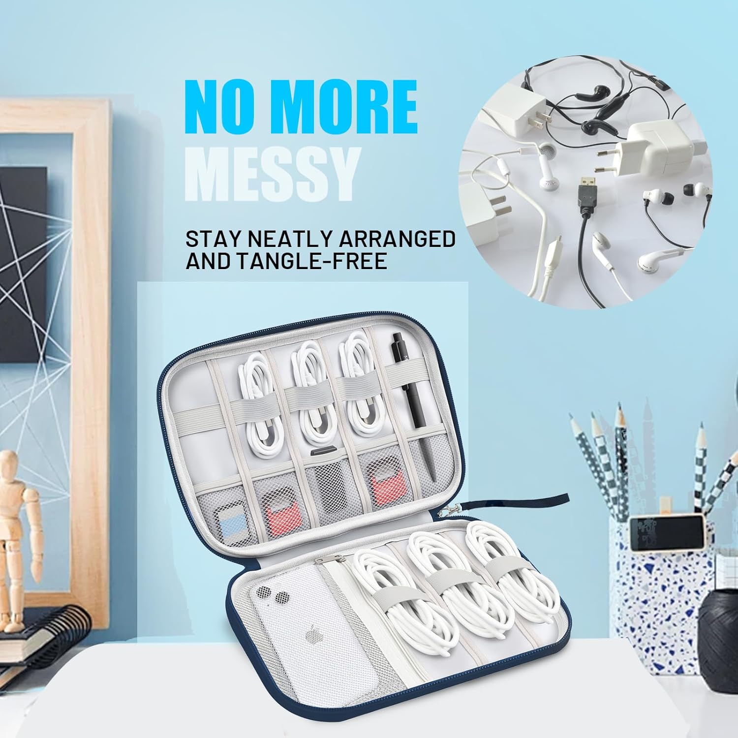 - 🚇Efficient Organization: Featuring a compartment design, our travel charger organizer allows you to efficiently store and access your travel accessories, including cords, chargers, and tech devices. The well-organized layout ensures that your electronics stay neatly arranged and tangle-free, making it easy to grab what you need on the go. It’s a great cable organizer and charger case all in one