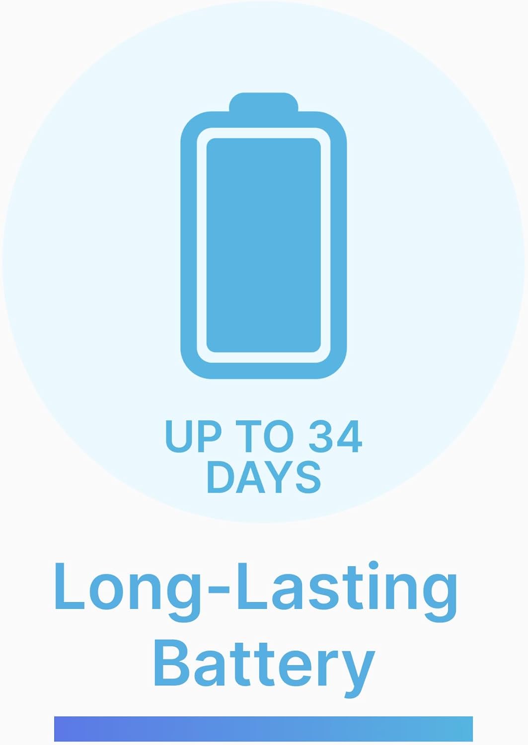 - LONG LASTING BATTERY: Up to 12 days of use on a single charge with performance mode, and up 34 days with extreme power saving mode.