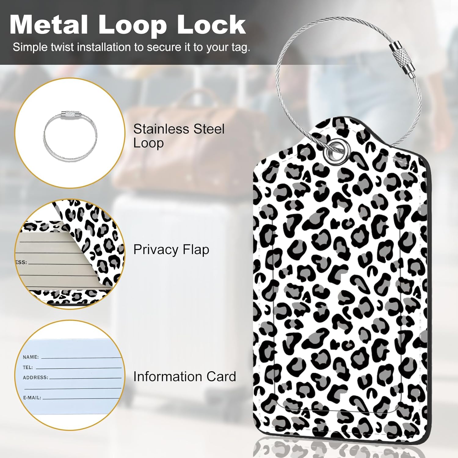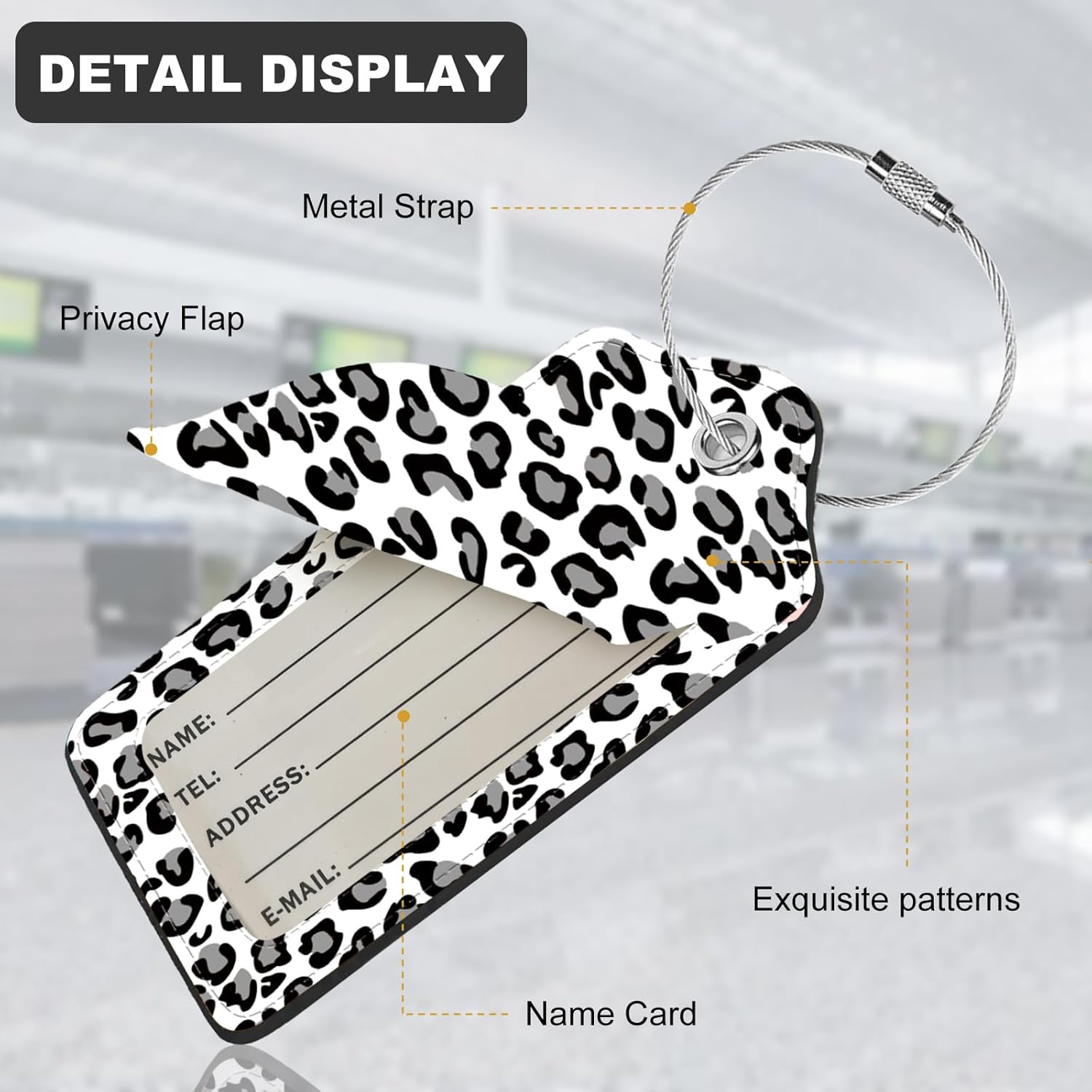2Pack Luggage Tags for Suitcases, Cute Unique Pu Leather Cruise Luggage Tag with Privacy Cover ID Label Address Card and Metal Ring Suitable for Women Men Kids Travel Bag Gray Leopard Print