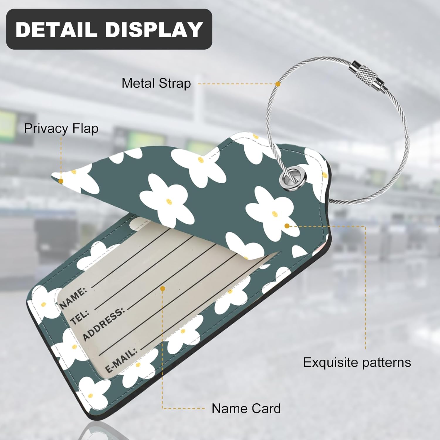 2Pack Luggage Tags for Suitcases, Cute Unique Pu Leather Cruise Luggage Tag with Privacy Cover ID Label Address Card and Metal Ring Suitable for Women Men Kids Travel Bag Little White Flower