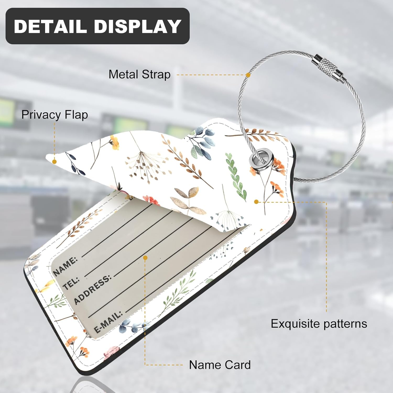 2Pack Luggage Tags for Suitcases, Cute Unique Pu Leather Cruise Luggage Tag with Privacy Cover ID Label Address Card and Metal Ring Suitable for Women Men Kids Travel Bag Floral and Plant Patternsn