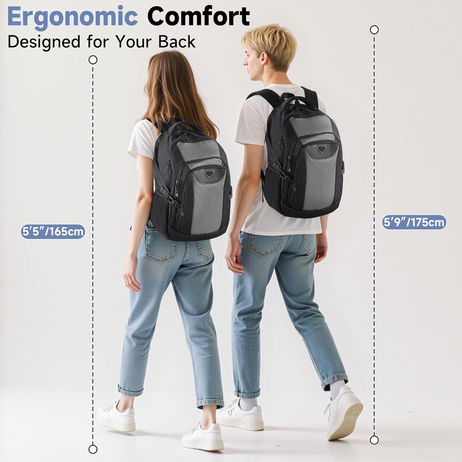 - 【Water-Resistant & Durable Material】 Crafted from water-resistant fabric, this computer backpack protects your belongings from unexpected spills or light rain. The reinforced stitching and durable zippers ensure long-lasting performance