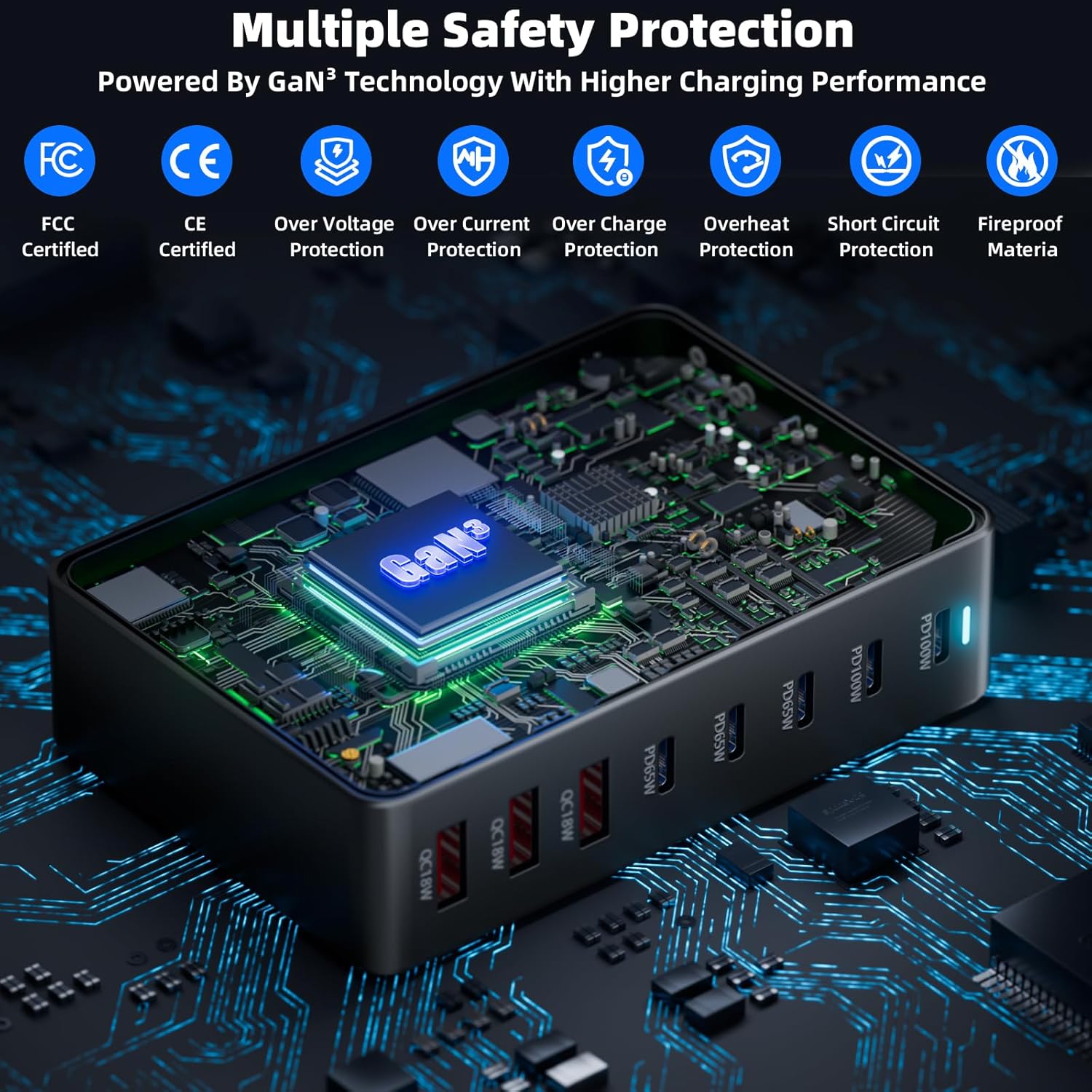 - Versatile Use for Various Situations: The 8-in-1 USB-C charger block is the ultimate solution for your charging needs, designed to power up to 8 devices simultaneously. Whether you're at home, in the office, traveling, or hosting a family gathering, this sleek and compact charging station offers the convenience and efficiency you need to stay connected and powered up.