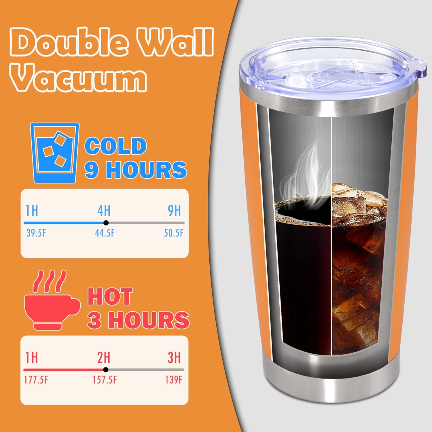 20oz Tumbler Stainless Steel Tumbler Cup with Lid Vacuum Insulated Double Wall Travel Mug, Durable Powder Coated Travel Coffee Tumbler Mug for Hot & Cold Drinks,Orange,4 Pack