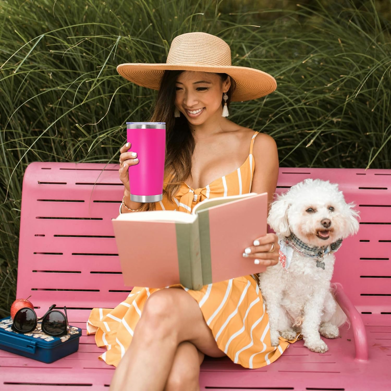 20oz Tumbler Bulk Stainless Steel Tumbler Cup with Lid Vacuum Insulated Double Wall Travel Mug, Durable Powder Coated Travel Coffee Tumbler Mug for Hot & Cold Drinks, Hot Pink,12 Pack