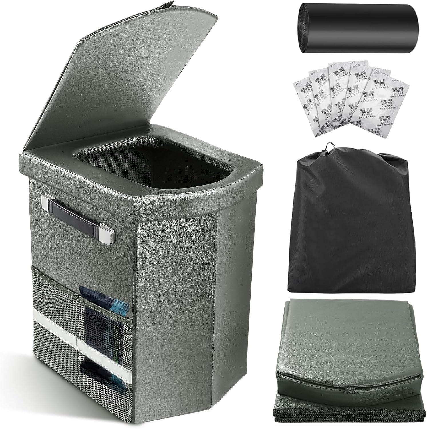 2025 Upgraded 16.5'' XL Portable Toilet for Adults,Tall Camping Toilet with Lid and Convenient Carry Bag, Portable Potty for Camping, Hiking, Car Travel,Truck, RV, Boating, Road Trips, Beach (Gray)