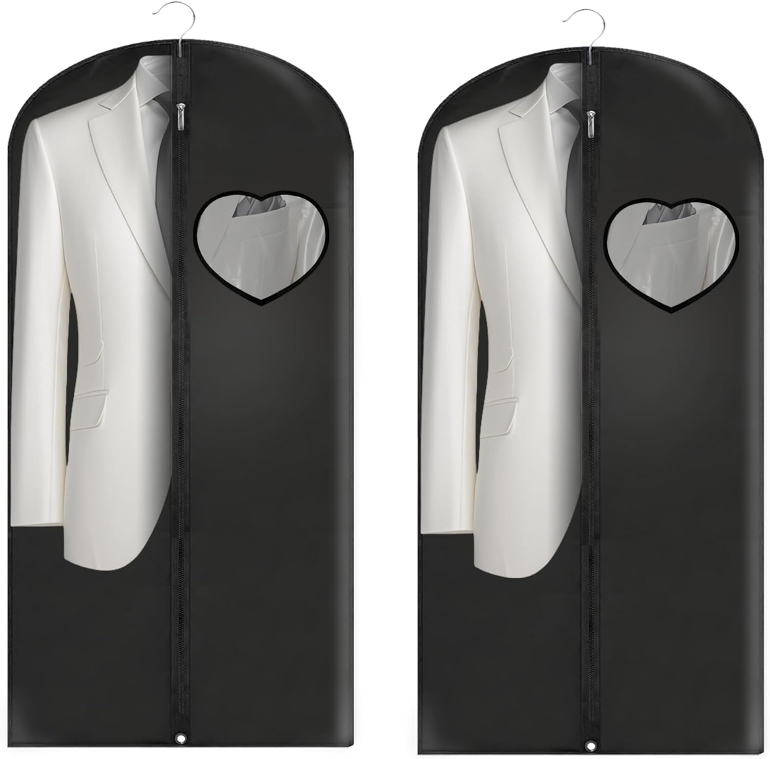 Dress Bags for Gowns Long, 45'' Garment Bags for Hanging Clothes, Suit Bag Cover for Storage and Travel, with Clear Heart Window, 2 Pack (Black)