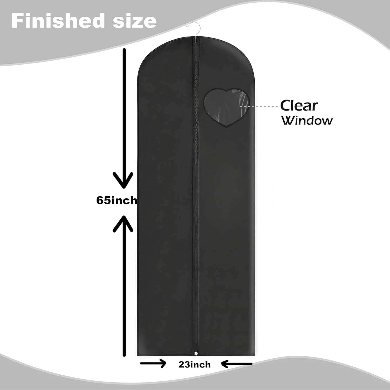 Dress Bags for Gowns Long, 65'' Garment Bags for Hanging Clothes, Suit Bag Cover for Storage and Travel, with Clear Heart Window, 2 Pack (Black)