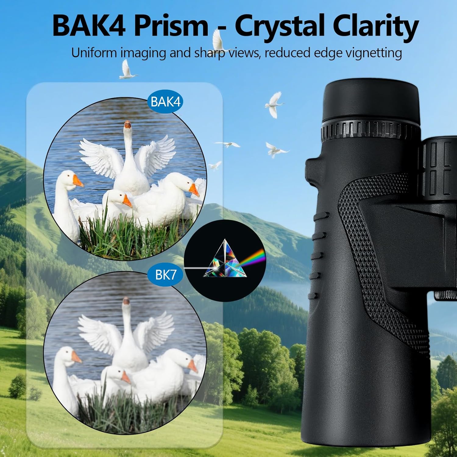 - 【FMC Coating & BAK4 Prism】- The objective lens and eyepiece of the binoculars are all made of optical FMC multi-layer broadband coating technology, the prism is made of high-precision BAK4 reflective coating to reduce stray light reflection between lenses, make the light path "cleaner" and maximize light transmission for more realistic image color reproduction and sharp views. Good performance even in low-light conditions. (Not suitable in complete darkness)