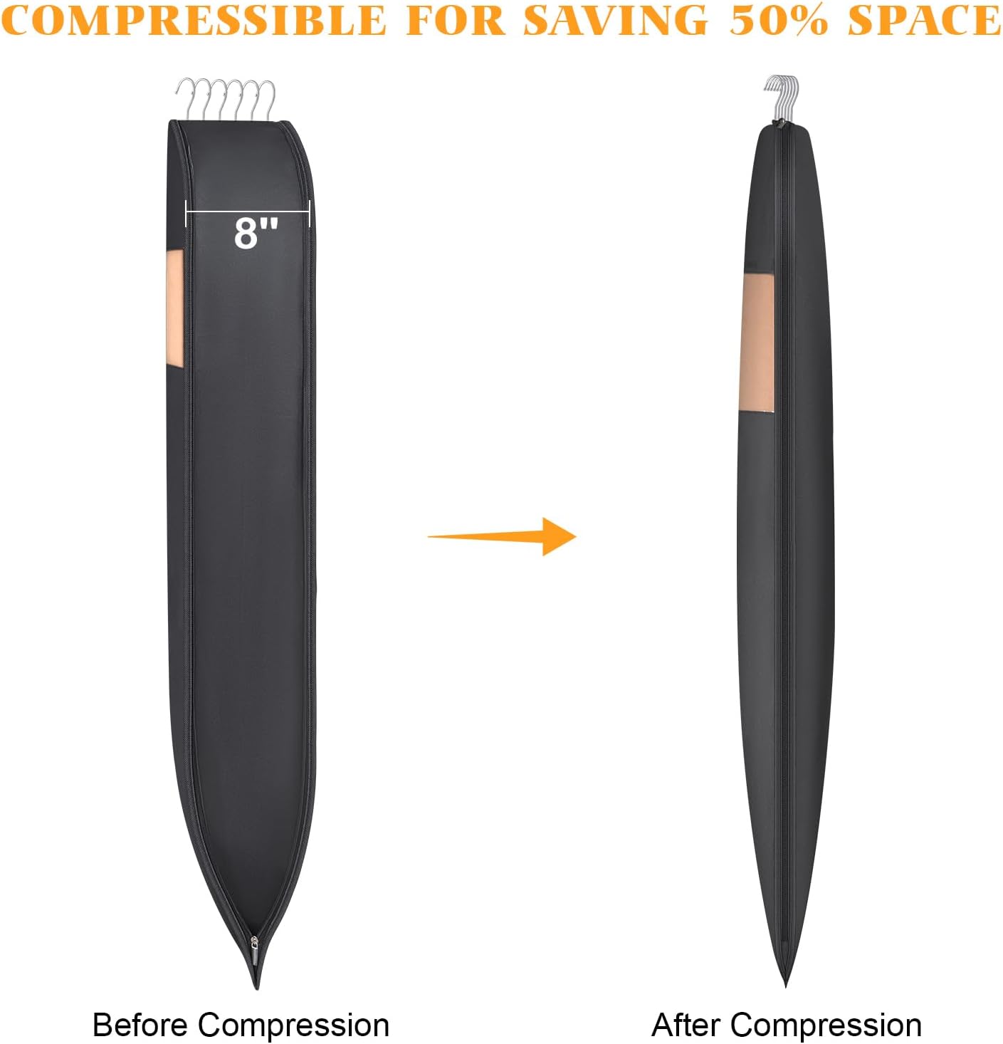 - 【Maximize Save 50% Closet Space】Our suit bag has the newly upgraded side double zipper design. Using the space saving garment bag with compression zipper that can save 50% space for creating a tight and organized closet. Since it is not vacuum, its effect is not as good as that of vacuum compression. Please consider carefully before purchasing to avoid not meeting your expectations.