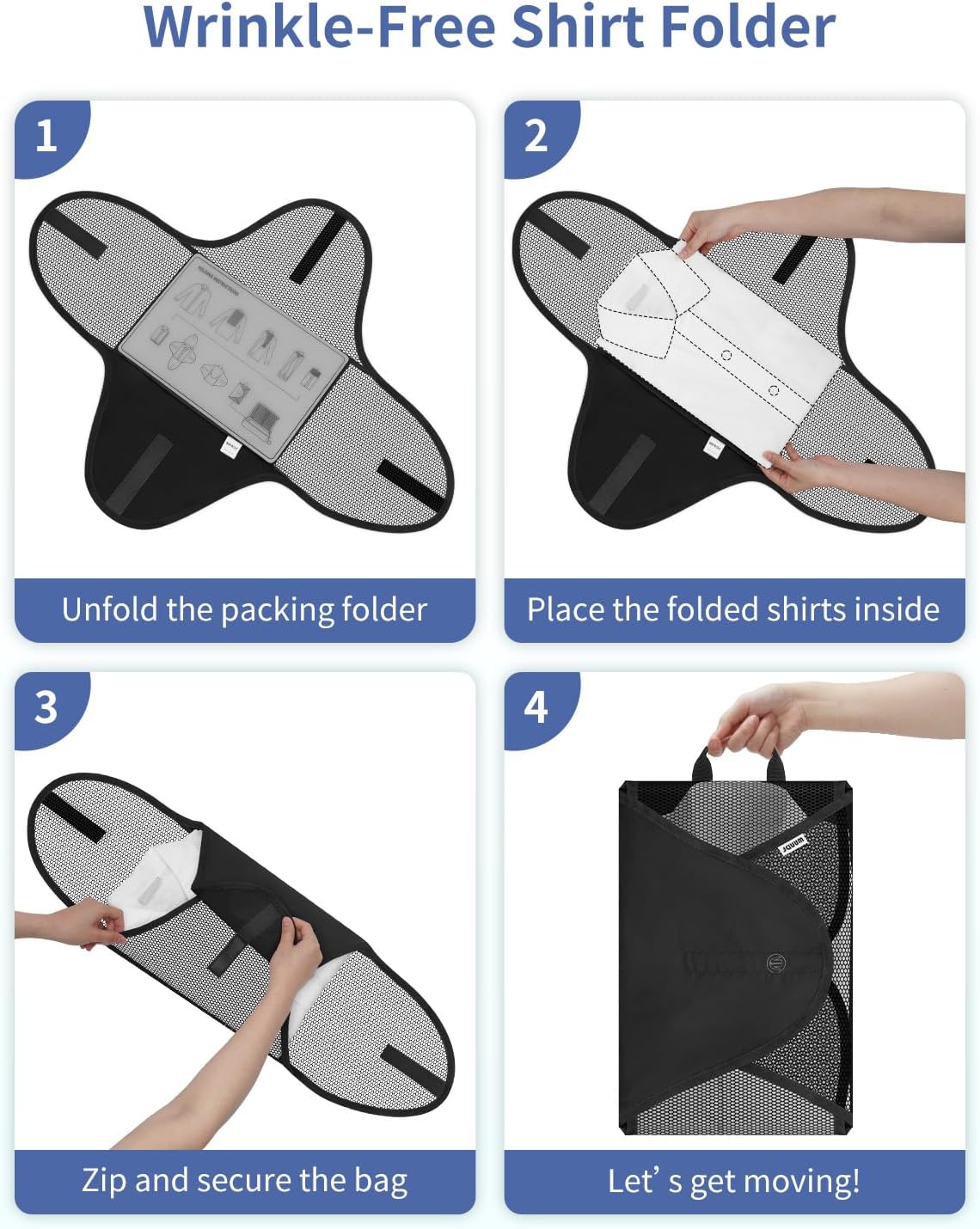 - 【Stay Sharp with Wrinkle-Free Shirt Folder】Our 14"×10.2" shirt organizer includes a built-in folding board that helps keep shirts and suits flat and crisp. Whether for client meetings or formal dinners, you’ll always look sharp without the hassle of hotel ironing.