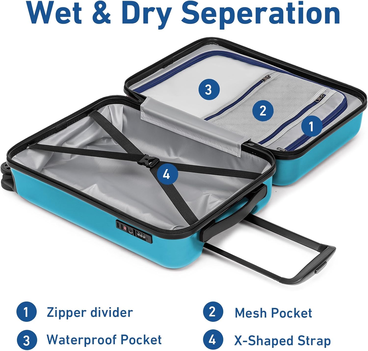 KYME Suitcase Hardshell With Double Spinner Wheels, PC+ABS TSA Lock Travel Luggage (Ocean Blue, 20" Carry On)