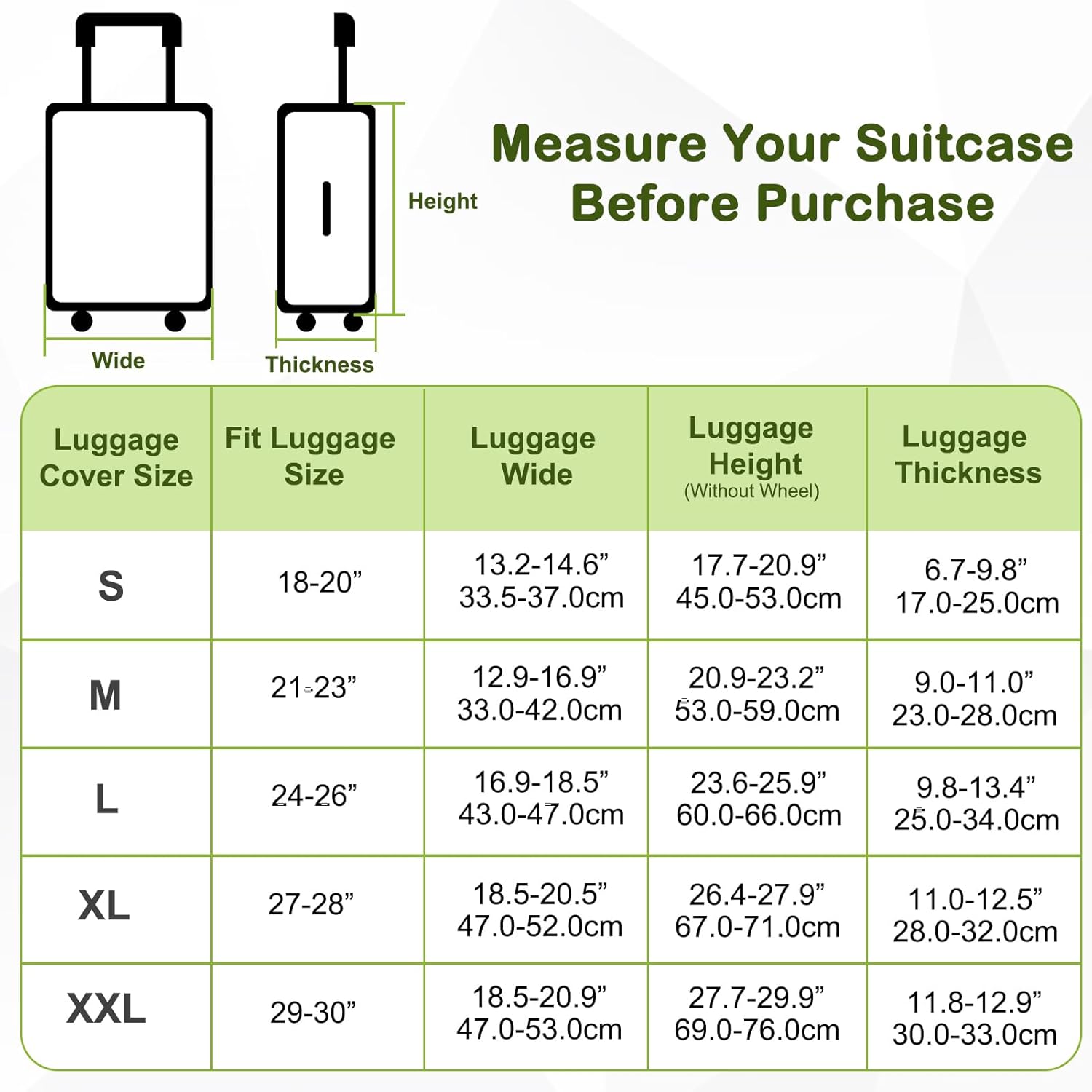 • Premium Stretch Fabric: Made from 95% polyester and 5% spandex, this luggage cover hugs your suitcase like a second skin. Its superior elasticity ensures a snug, customized fit across various sizes, giving your luggage a sleek, secure look wherever you go