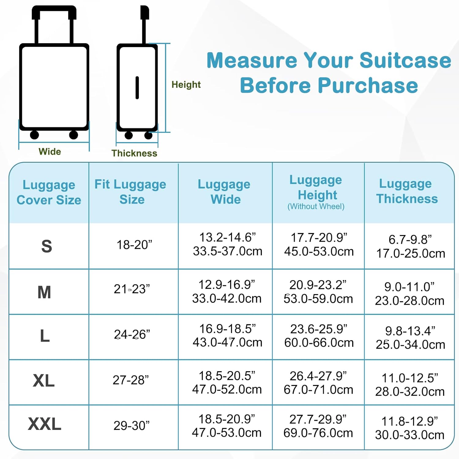 • Premium Stretch Fabric: Made from 95% polyester and 5% spandex, this luggage cover hugs your suitcase like a second skin. Its superior elasticity ensures a snug, customized fit across various sizes, giving your luggage a sleek, secure look wherever you go