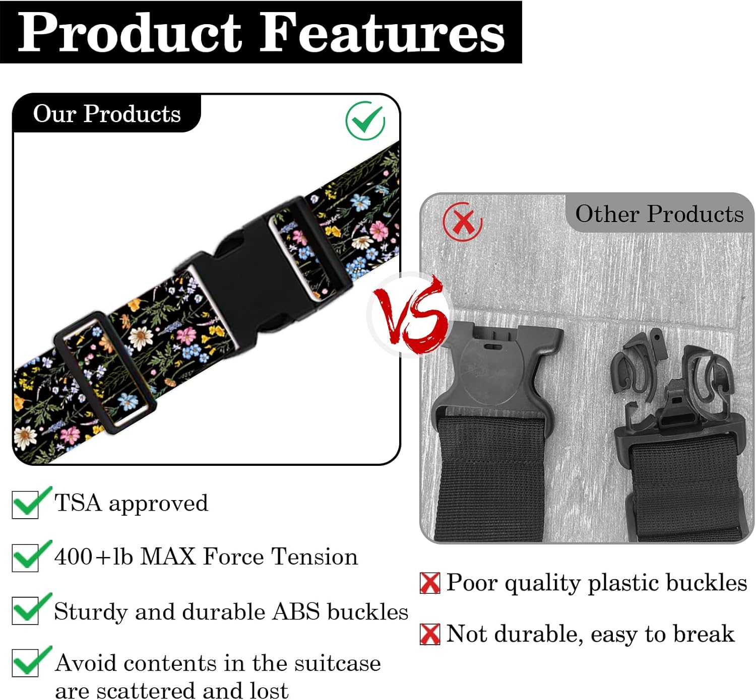 2 Pack Wildflower Luggage Straps for Suitcases Adjustable Travel Belt Luggage Tie Carry On Bag Suitcase Strap to Keep Suitcase Secure While Traveling