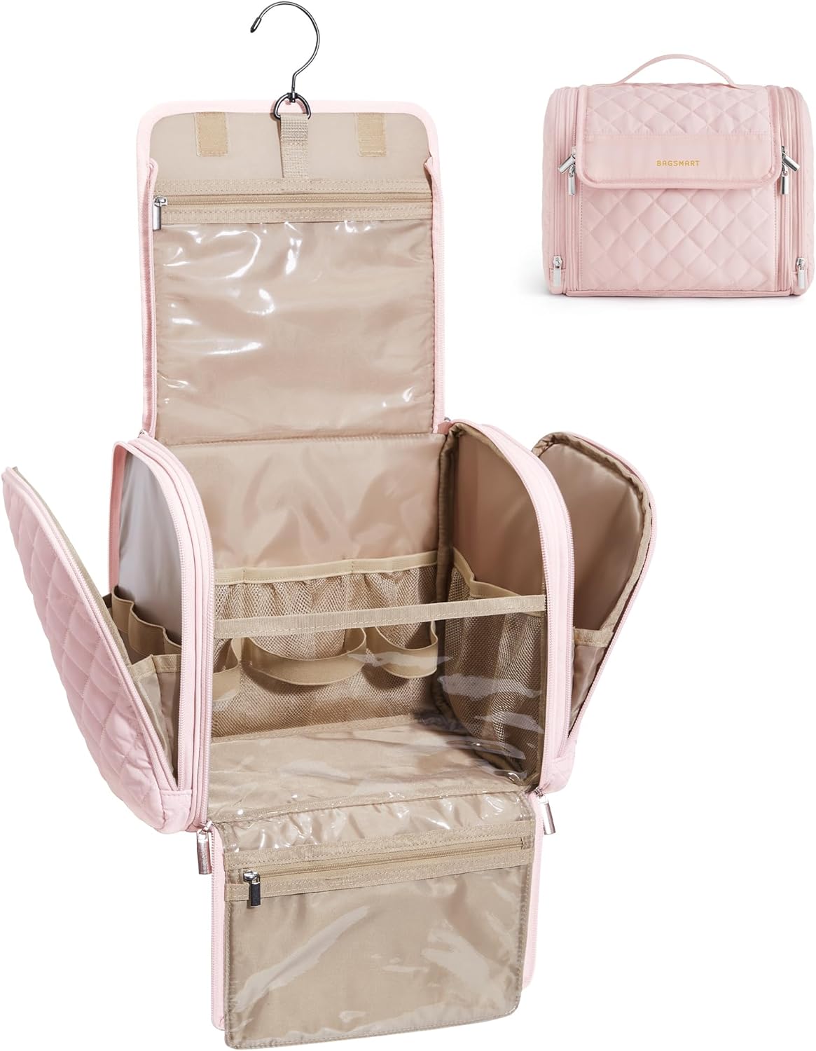 BAGSMART Travel Toiletry Bag, Large Capacity Cosmetic Bags for Women with Hanging Hook, Water-resistant for Toiletries Accessories Brushes Sponge, With Handle