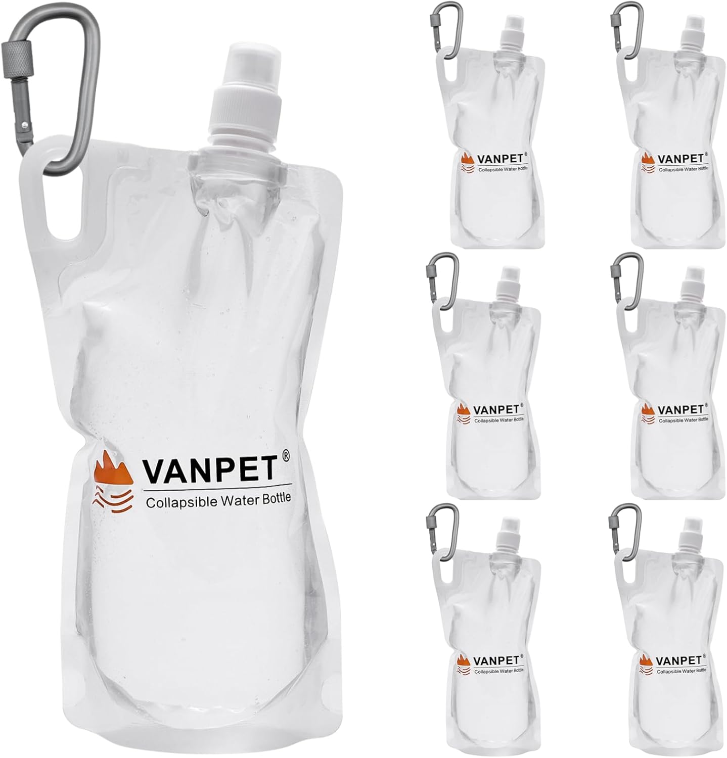 1L Hiking Collapsible Water Bottles, 33OZ BPA-Free Plastic Flasks, Reusable Drink Bags, Foldable Backpacking Water Bottle for Travel Camping Hiking (6-Pack)