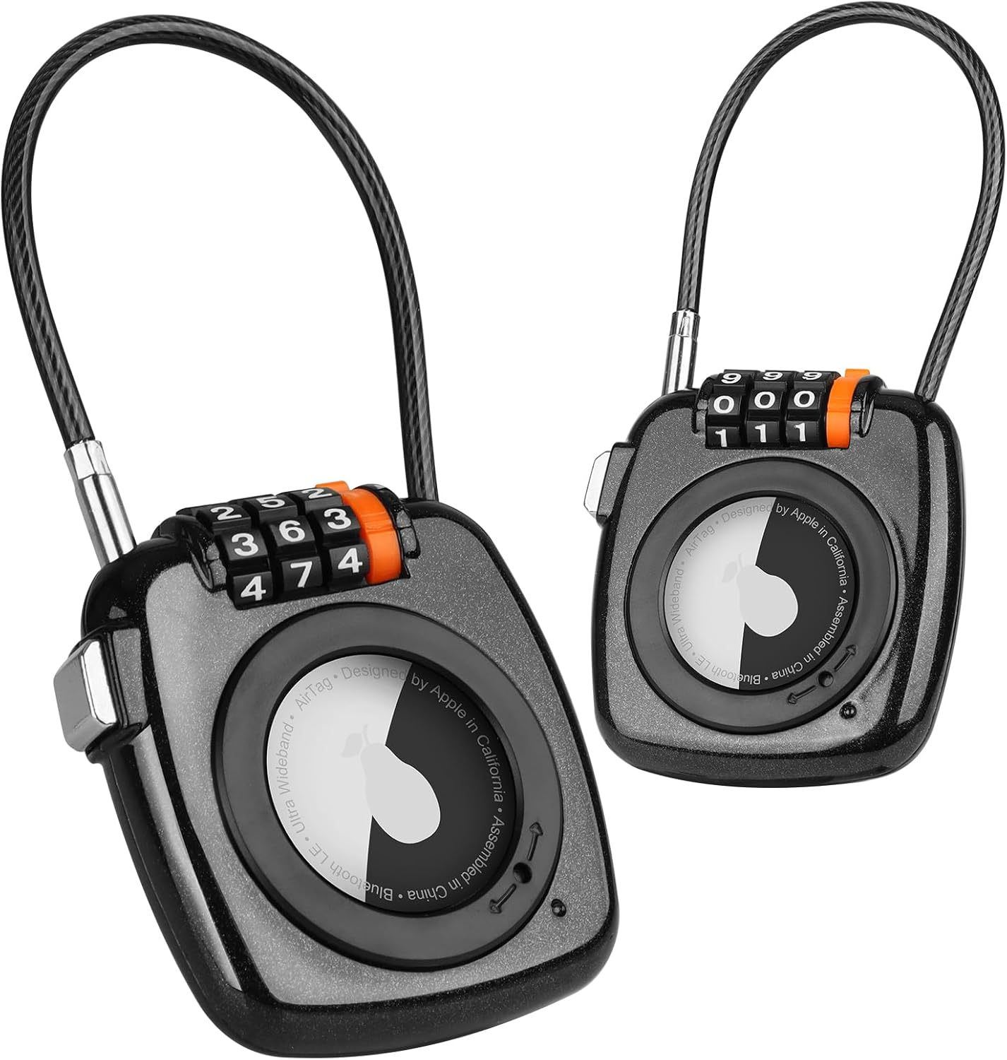 Compatible with Apple AirTag Secure Lock with Wire Cable, 3-Digit Combination Luggage Locks, Alloy Body Ultra Durable Anti-Lost Protective Case for Luggage, Bags, Suitcase, and Backpacks (BLACK)