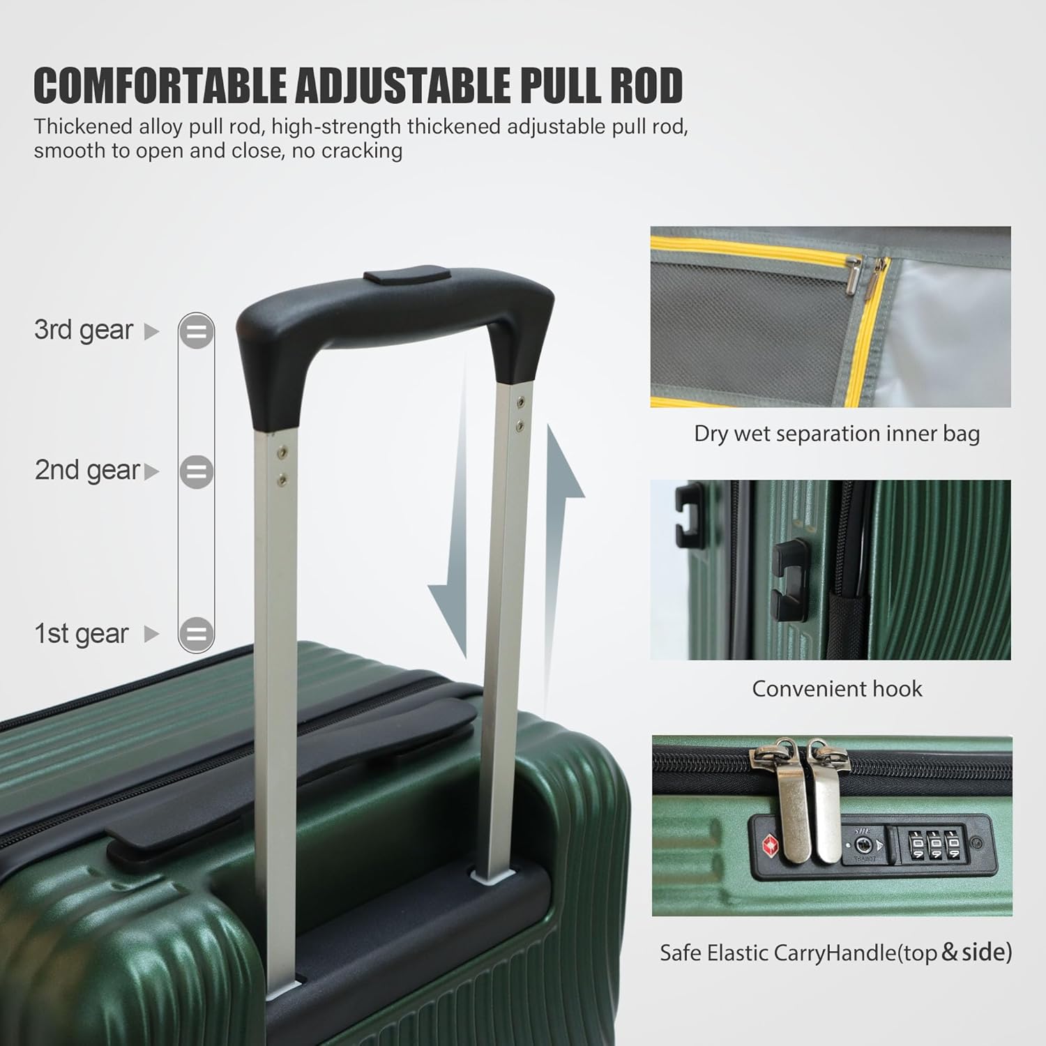 - 【CREATIVE FRONT OPENING】The front opening design offers a new way to open and close the suitcase effortlessly, freeing up your hands. It reduces the opening area by 50%, saving space and enabling you to open it in any crowded place for easy access to your belongings.