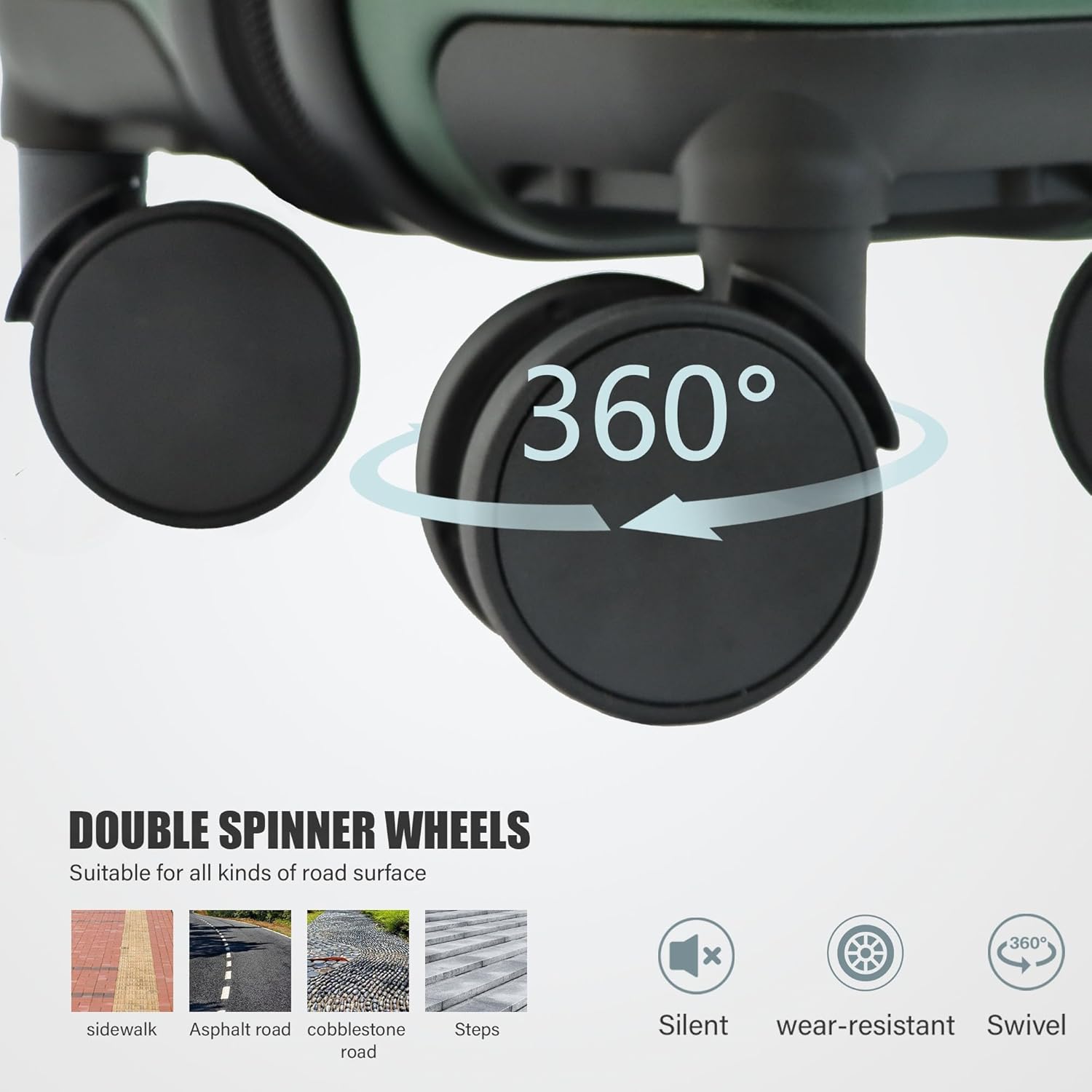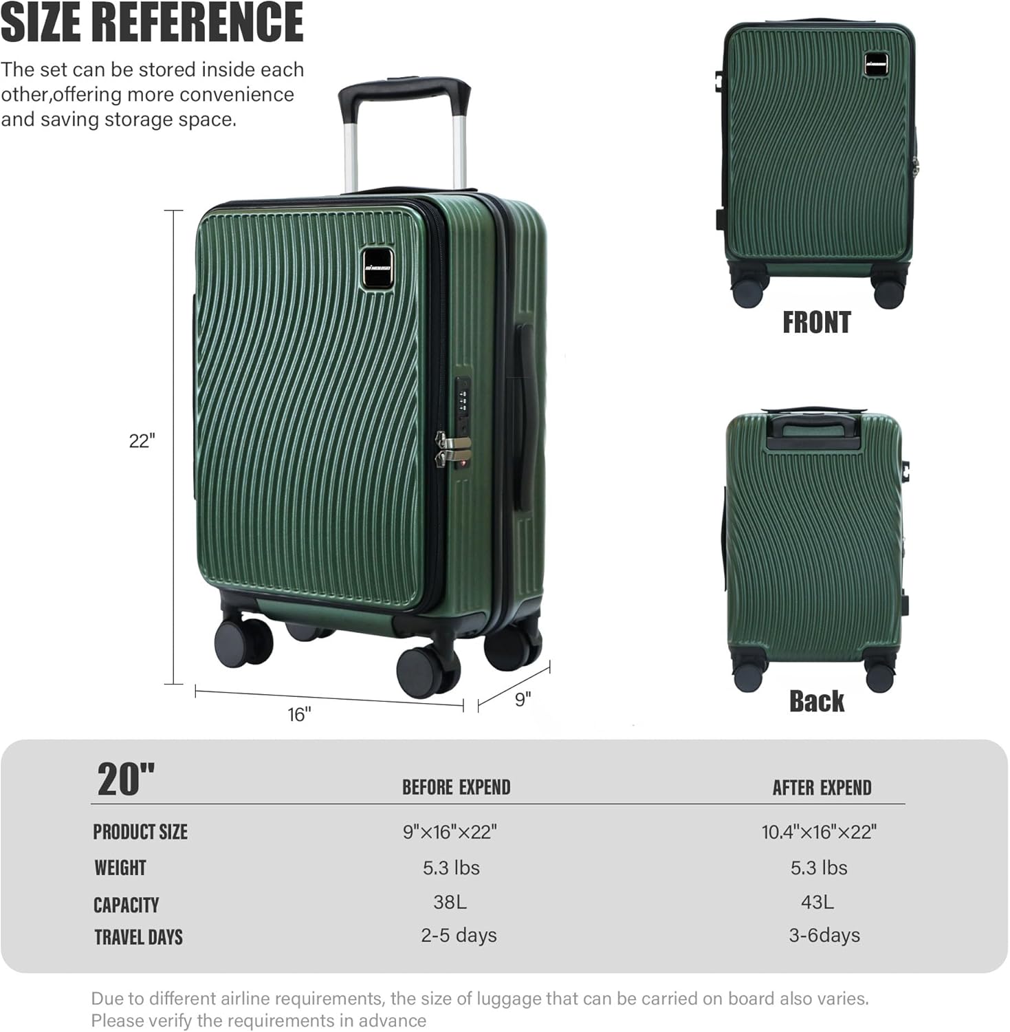 buy 0ne get 0ne free! 20 Inch Expandable Carry on Luggage PC Hard Shell TSA Suitcase Top Opening 360°Rolling Wheels Travel Luggage Suitcase(Green)