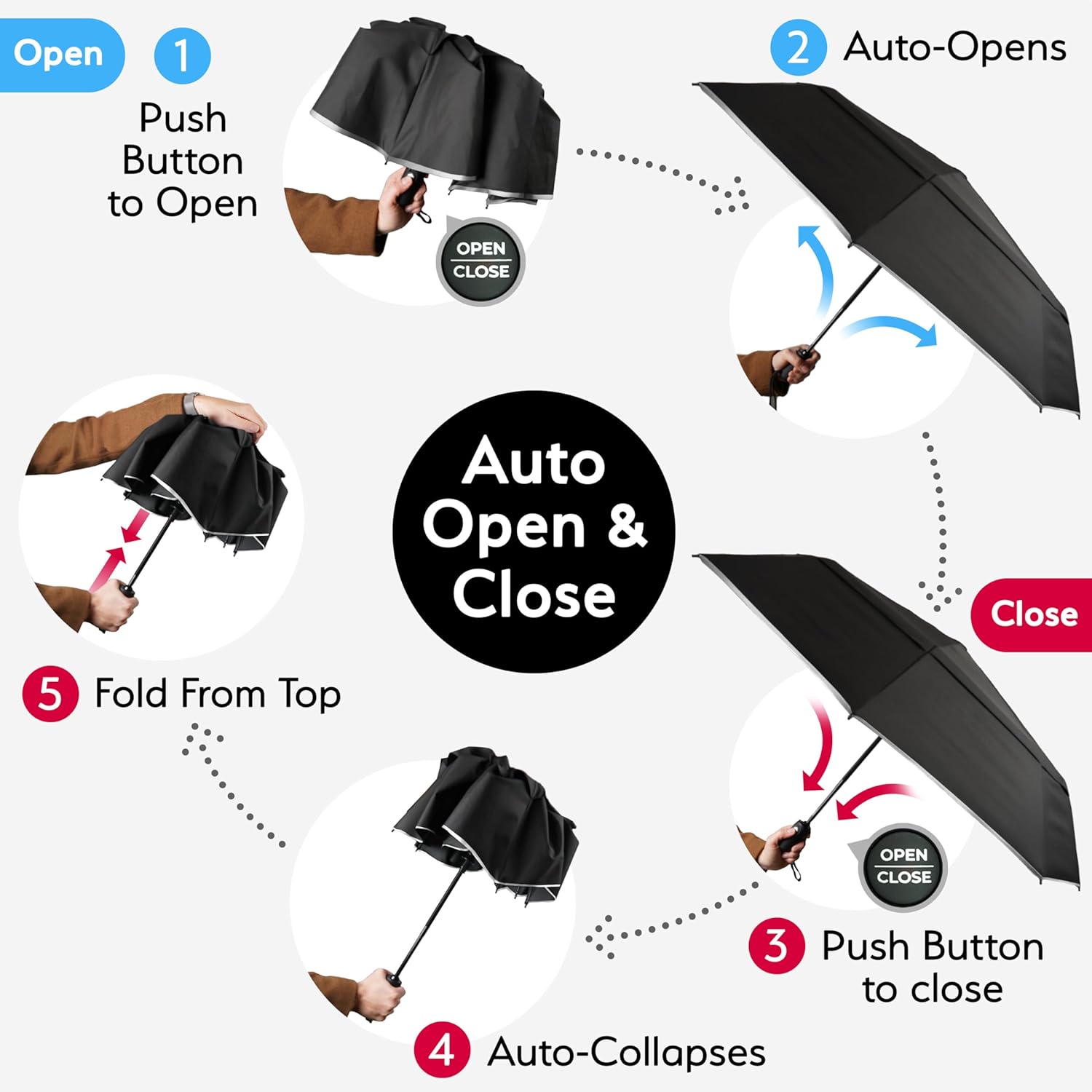 TUMELLA Strongest Windproof Travel Umbrella (Compact, Superior & Beautiful), Small Strong but Light Portable and Automatic Folding Rain Umbrella, Durable Premium Grip, Fits Car & Backpack