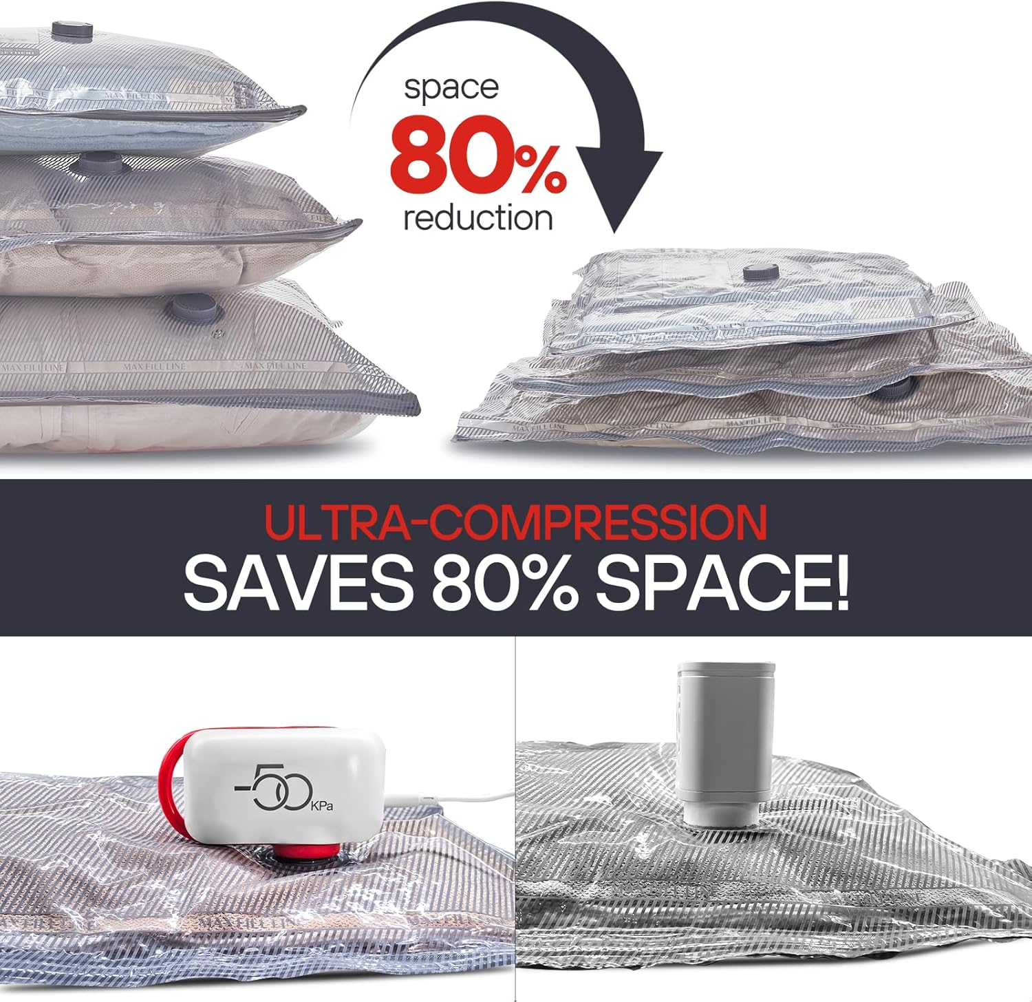 - Superior Compression Technology: Features a 12V 1A electric pump with -50 kPa pressure and 12L/min airflow, saving up to 80% of luggage space