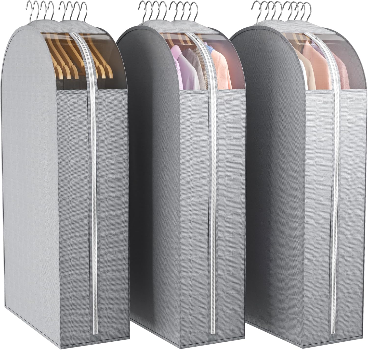 - 10β Gusseted & 3 Pack: Each garment bag can hold 10 suit or 8 winter coats without wrinkles.50 inch length is perfect for storing long coats, furs,Jacket, MIDI dresses and pants, etc