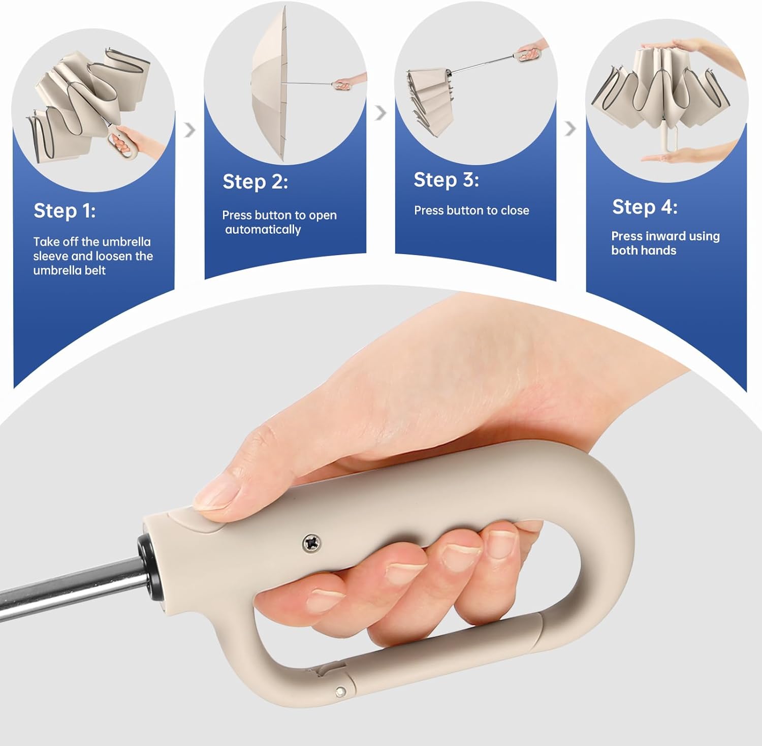 - Simple and Quick: The LUNAREVA reverse-folding umbrella features an innovative wet-surface inward-folding structure, trapping rainwater inside when closed to prevent wetting clothes, tables, or car seats. It offers smart one-button opening and closing, reducing closing force by 40%, and folds down to less than 14.8 inches in length, weighing just 1.1 pounds—a compact umbrella that balances practicality and convenience