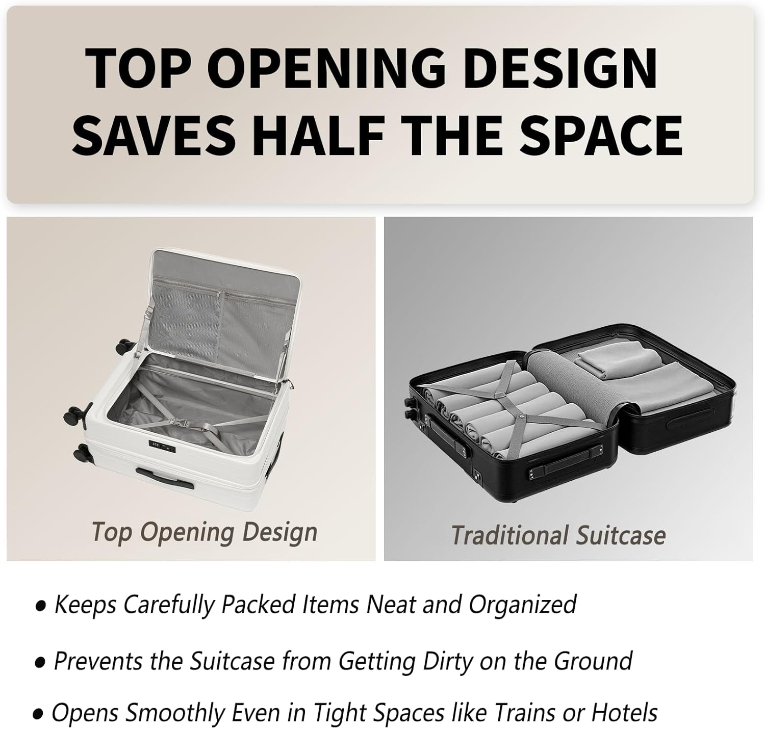 - TSA Lock, Top Opening & Cup Holder:This suitcase with built in lock is TSA approved luggage for secure inspections. The unique top opening luggage design provides quick access in hotels or car trunks, while the cup holder keeps drinks handy during flights, layovers, or daily commutes