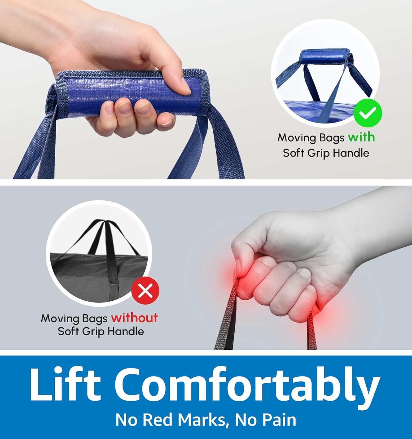 6 Pack Heavy Duty Moving Bags with Padded Wrap Around Handles-Strengthened Zipper Extra Large Storage Totes for Dorm College Clothes