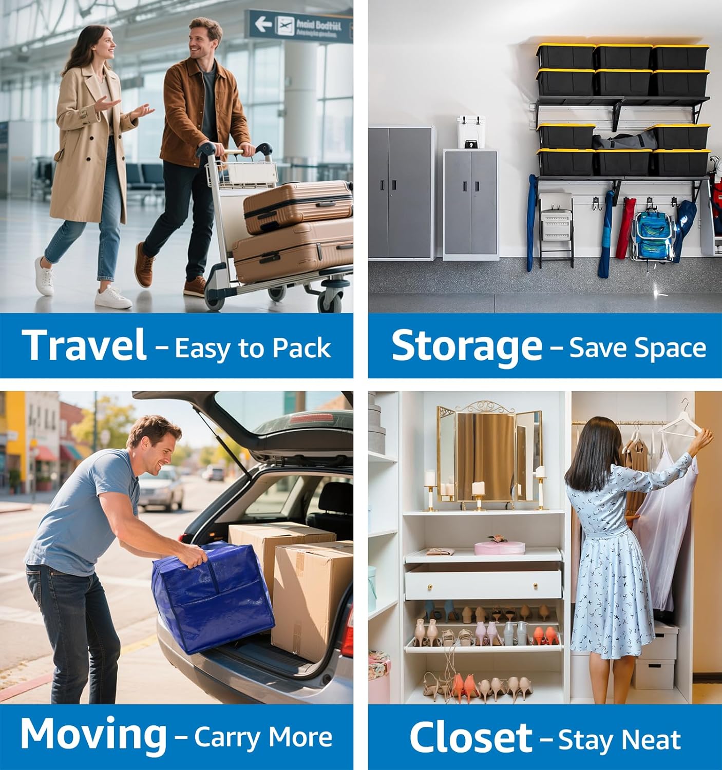 - 6 Bags for Every Need From Moving Day to Daily Life:Built with sturdy construction for long-lasting performance, this moving bags transitions seamlessly between moving, camping, travel, dorm organization, and home storage. It's the perfect storage solution you'll ever need