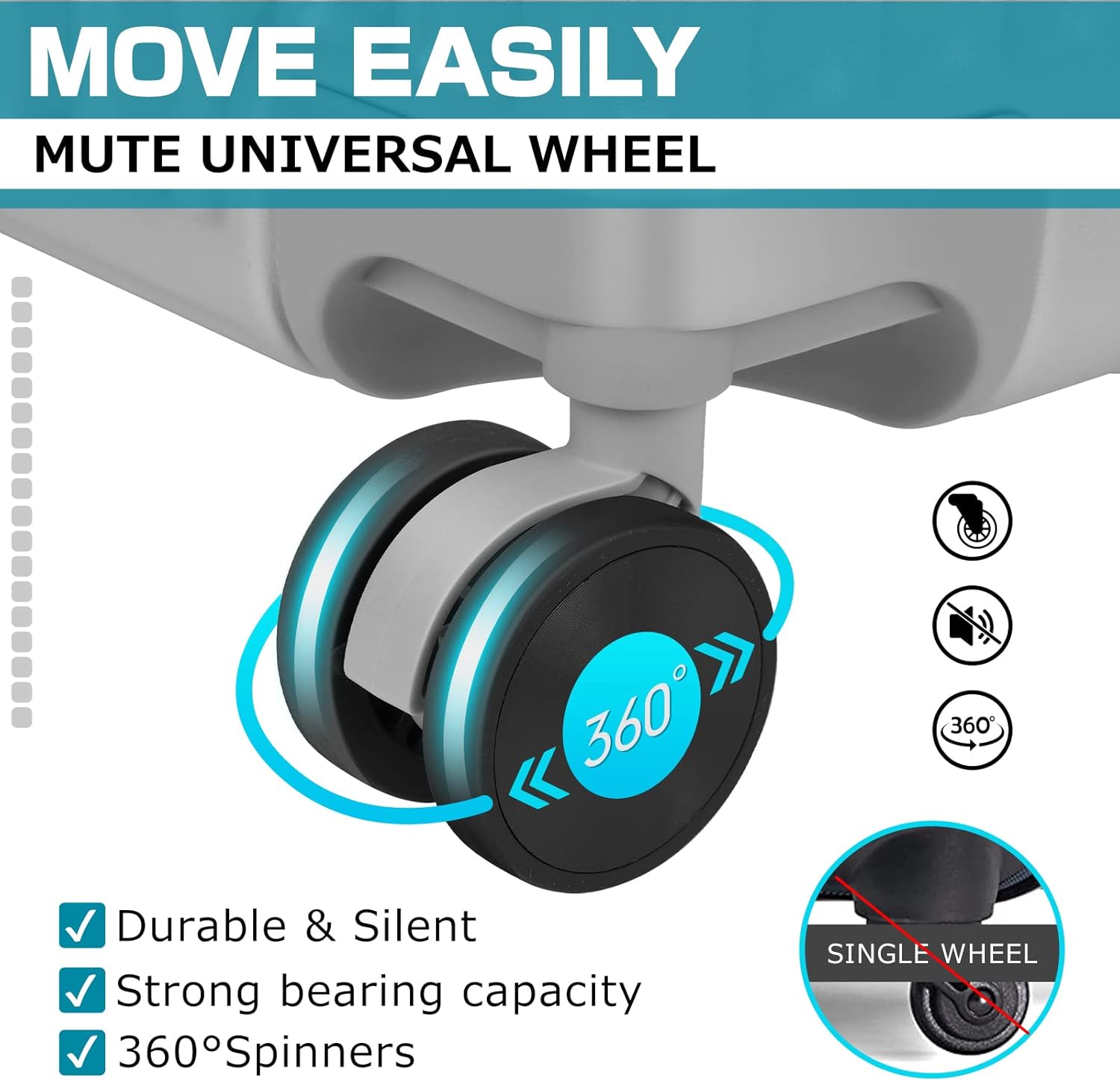 - 【360°Spinner Wheels】 The 4 multi-directional swivel wheels distribute the weight of your luggage evenly, ensuring an easy glide through a busy airport or train station, quietly and smoothly. The double wheel design is more durable.